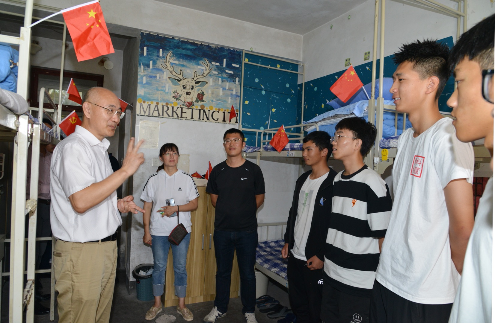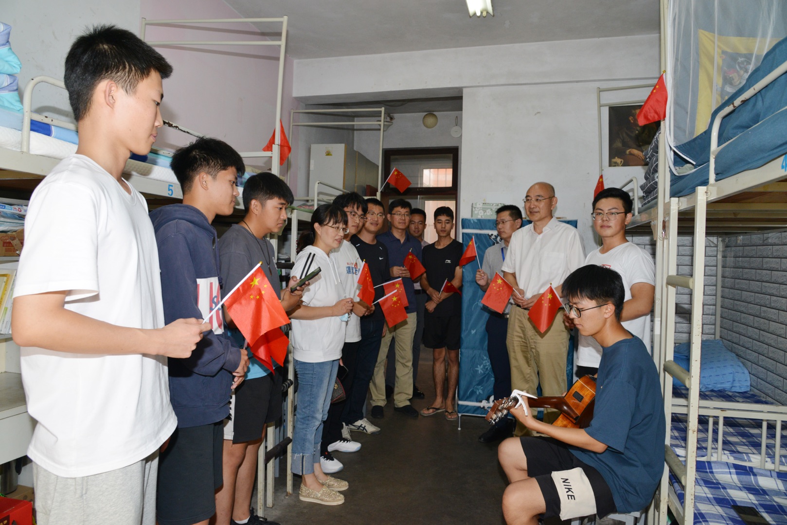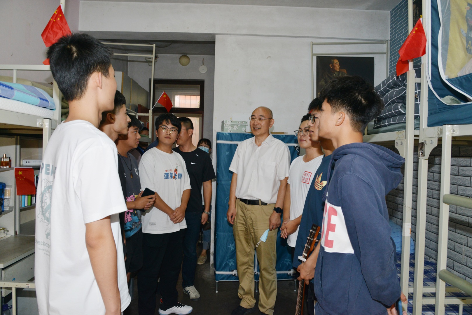 南区5号楼学生公寓与学生进行了亲切交谈,并向他们送去节日祝福。看到陈校长和各位老师们到来,大家纷纷起立,用掌声致以热烈欢迎。南5A区105宿舍是新生宿舍,同学们邀请陈克正校长及其他部门领导老师弹奏吉他共同歌唱《我和我的祖国》,用歌声向中华人民共和国成立72周年华诞献礼;在南5A区107宿舍,大家共同观看央视《中国梦·祖国颂—2021国庆特别节目》,了解党的历史,赓续红色血脉。陈克正详细了解了秋季学期开学以来同学们在校学习、生活情况,询问大家面临着哪些实际问题,嘱咐大家在校期间养成良好习惯,加强体育锻炼,保持宿舍卫生,做好个人防护,并对同学们积极参与7mmtv