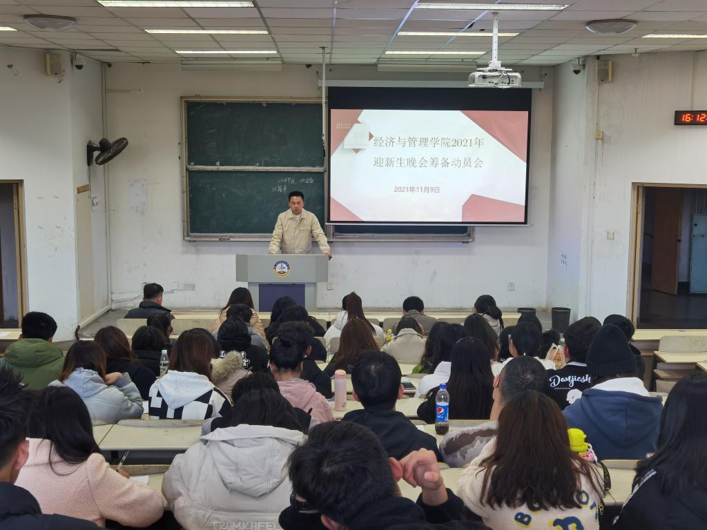 11月9日下午4时,2021年迎新生筹备动员会在弘毅楼E302教室召开。学生会指导老师孙一君、辅导员高守朋老师出席会议。2020级、2021级各专业文艺委员、专业负责人,学生会副部级以上成员参加了此次动员会。