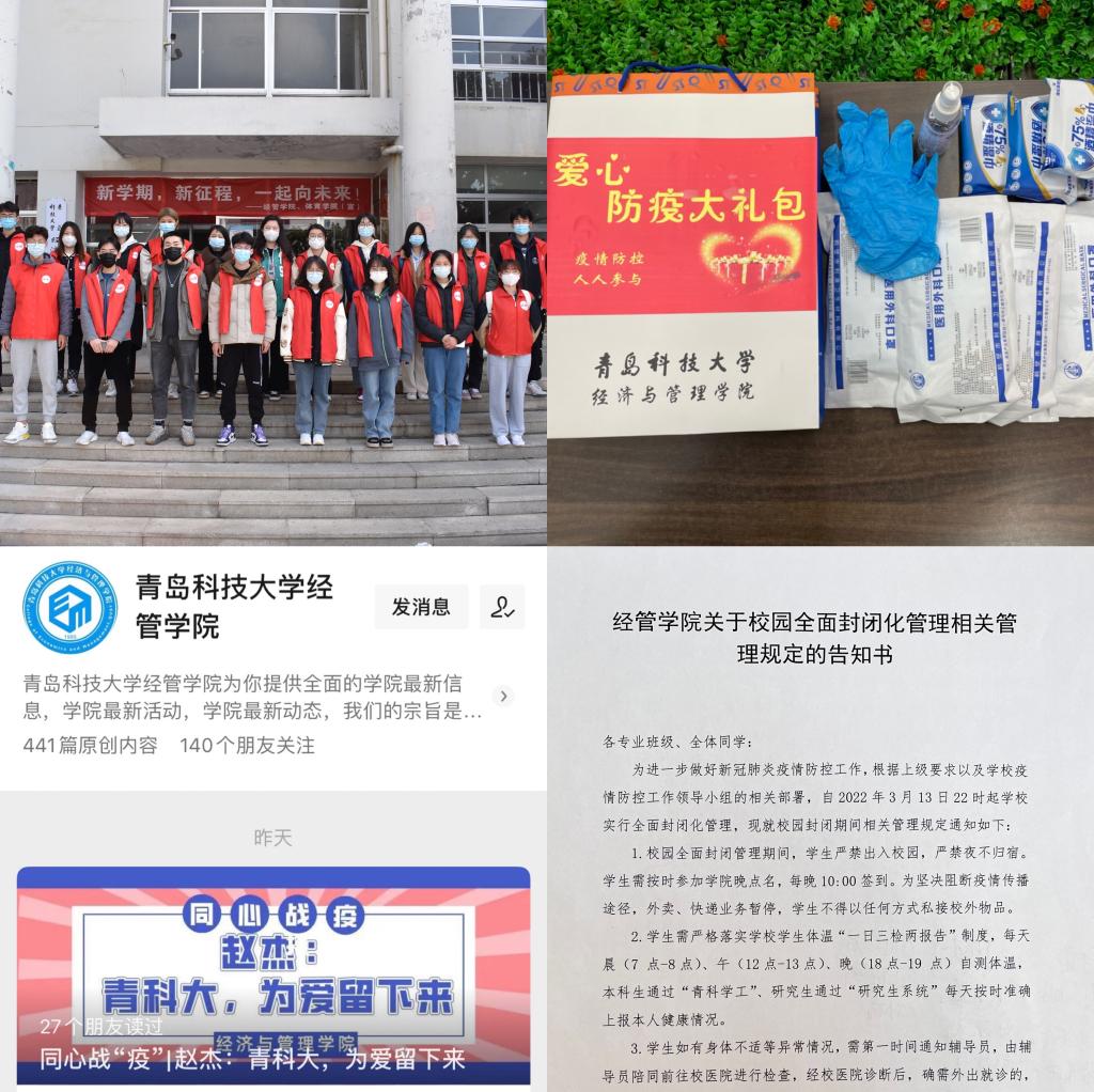 关于校园封闭化管理相关管理规定的告知书》;第一时间响应校团委号召,面向全院团员青年发布倡议书、招募令,组建疫情防控青年志愿者突击队,建成450人的志愿者储备池;第一时间组织全体专职辅导员撰写疫情防控主题“辅导员说”,主动发声,回应关切,把握学生舆论导向;真正用好校团委划拨的“千元抗疫特殊团费”,确保专项团费在抗击疫情工作中切实发挥传递组织温暖、凝聚团员青年、解决实际困难的作用。