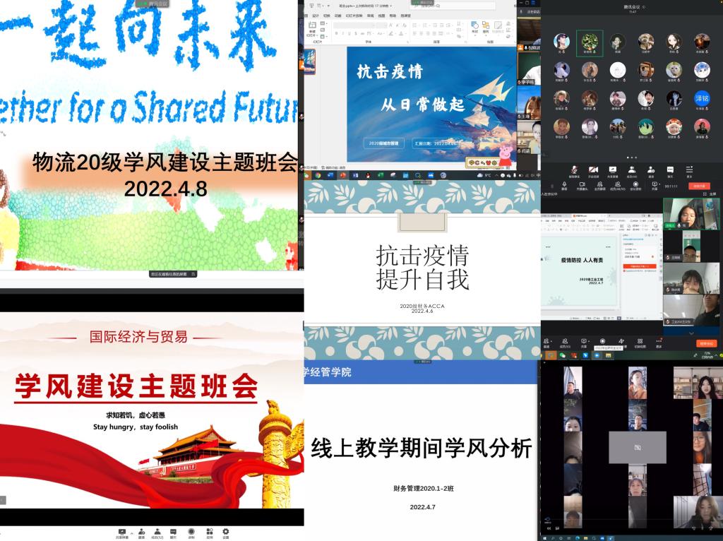 的规章制度,积极配合辅导员的信息摸排、健康提报等日常工作,强化责任意识,主动按照要求参加核酸检测。结合线上课堂的情况反馈,提醒同学们不要以疫情当做挡箭牌,在防控严峻大背景下,更应该加强自我管理,严格约束自己,以班级为主体互帮互学,同力推动班级学风建设,努力打牢专业知识基底。二是做好人文关怀,守好心理防线。班主任们教育引导同学们要对疫情引发的防控管理举措加以理解和支持,做到绝不突破防线,以稳定心态平和度过防控期。班主任们结合专业内学生的思想动态和心理诉求进行交流,抚慰学生的焦虑心态,号召同学们在学习之余积极参加健康的文体活动,以乐强身,以乐促学。三是立足专业优势,早做职业规划。各专业班主任带领学生们重新学习专业培养计划,介绍今年来的考研、就业情况,鼓励同学们对毕业后的路径早做规划,依照规划全方位的塑造自身,强化本领,将书本学习与动手实践相结合,积极参加专业、科创赛事,在实践中查漏补缺。