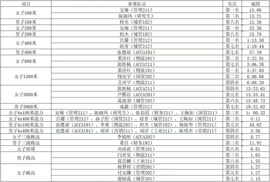 田径队在女子组中实现新突破,充分展现了经管学子昂扬向上、团结拼搏的精神风貌。