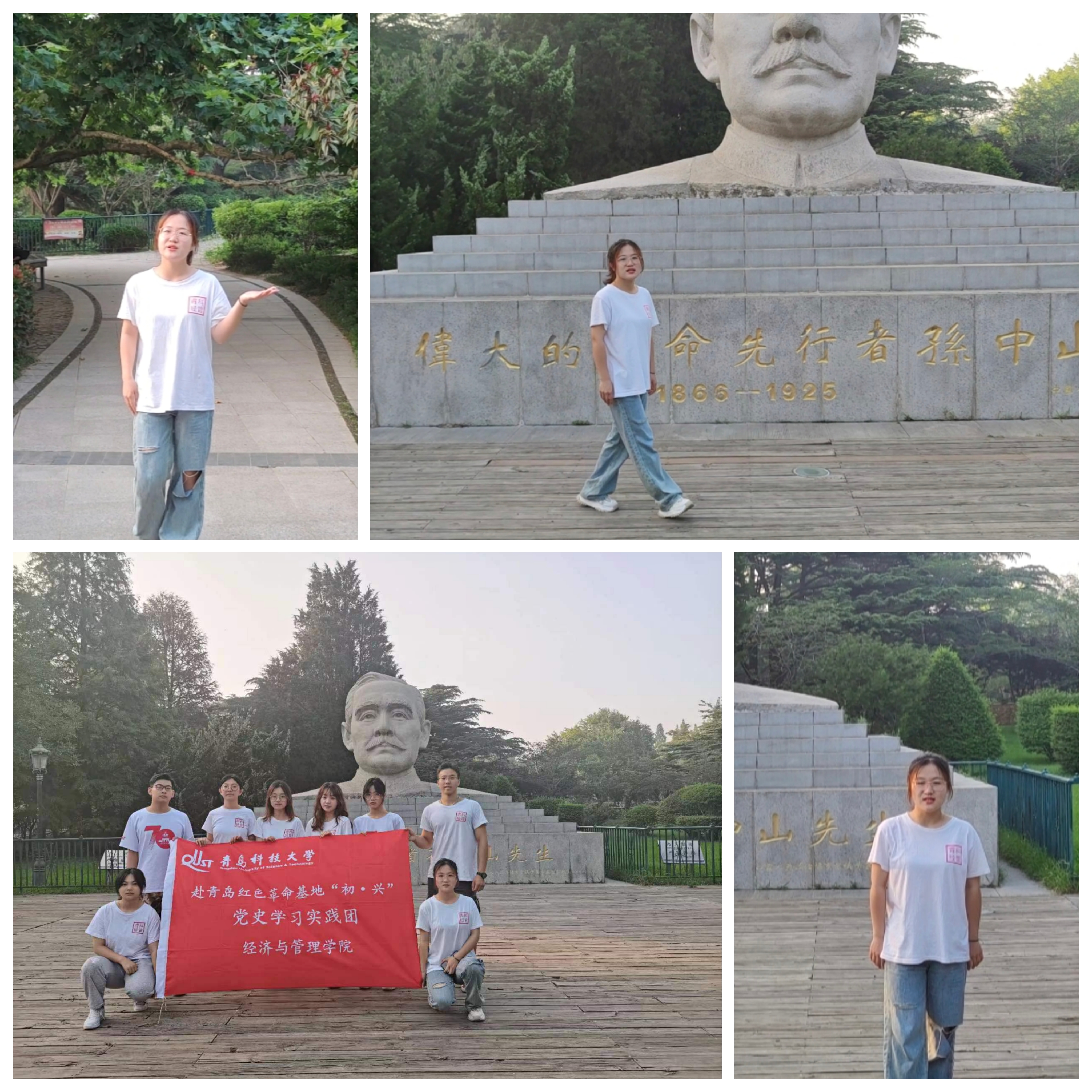 中山公园是青岛的一座综合性公园,由德国殖民者始建。1922年我国收回青岛主权后,改名为“第一公园“。整装待发后,成员们共同游览了中山公园,并重点瞻仰了孙中山先生的雕像。在宣讲员黄文菡同学的讲解下,团队成员回顾了孙中山先生一生为革命事业作出的贡献和中国共产党的光辉历程,了解了公园的建园历史和与之相随的中国艰苦革命历程,同时也吸引了不少市民与游客的关注。其中有一位农民导演在宣讲结束后留下与团队进行了交流,“我带领农民拍了一辈子戏,很多也是革命题材的,你们做的这个事情有意义啊,一定不能只当做是7mmtv