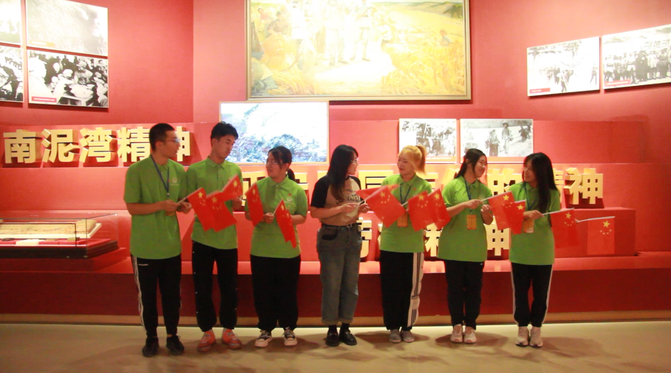 实践团队员在大生产纪念馆跟随着讲解员的介绍,见证了党的峥嵘历史,感受了南泥湾精神的厚重。在这方阳关普照的大地上,在这片生机盎然的田野里,队员们深情唱起了歌曲《南泥湾》,手中的红旗迎风而动,与万里晴空交相辉映,热情歌颂了开荒生产建立功勋的八路军战士,重温了抗战时期大后方军民自力更生、奋发图强的延安精神,帮助同学们深切感悟到如今的幸福生活是在革命先烈的鲜血与牺牲中诞生的,我们应该倍感珍惜,铆足劲头,共同实现中华民族伟大复兴的中国梦,建设一个更加强大、美丽的祖国。