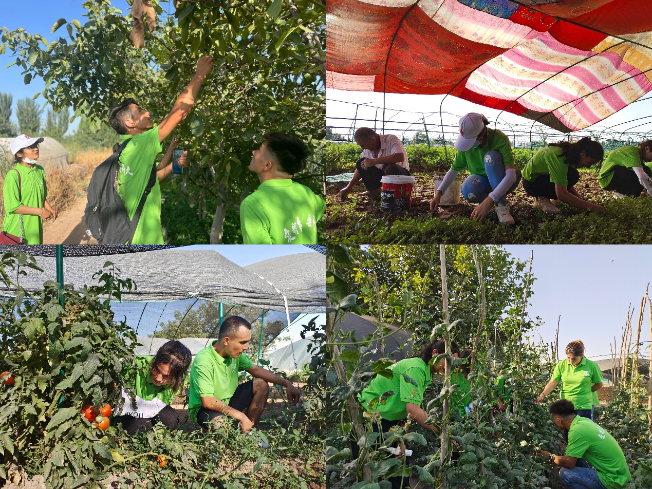 为充分了解喀什市色满乡提坎贝西村乡村振兴战略开展情况,以及村民们对乡村振兴战略的关注度并且推广普通话对农民生活的改善和影响乡村振兴的重要性,“石榴花开·同语促团结”推普助力乡村振兴社会实践团队前往提坎贝西村蔬菜大棚基地、乡村振兴快递进村示范点开展有关“国家通用语言文字与农村经济发展”调研与宣传 。此次调研中,团队成员深入了田间地头、快递站,以访谈形式对乡村家庭的经济情况进行了深入调查。通过调查发现了色满乡提坎贝西村主要以大棚蔬菜产业为主。大棚蔬菜产业已发展为该村脱贫共建的支柱性产业。
