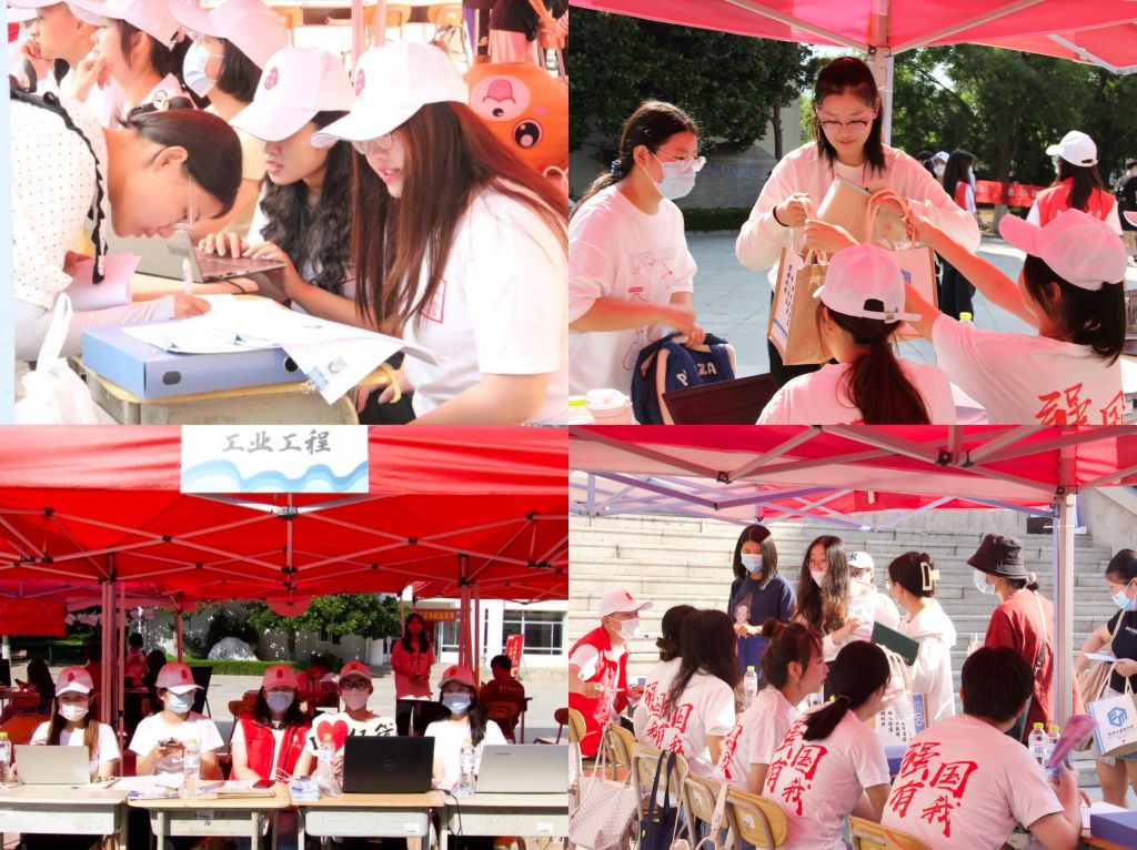 设置党员先锋岗、绿色通道专区,为全体新生发放“经”心新生大礼包、防疫物资、清凉贴等暖心物品,设置朋友圈打卡背景板、手持KT板、“大学初印象”之新生采访等具有7mmtv