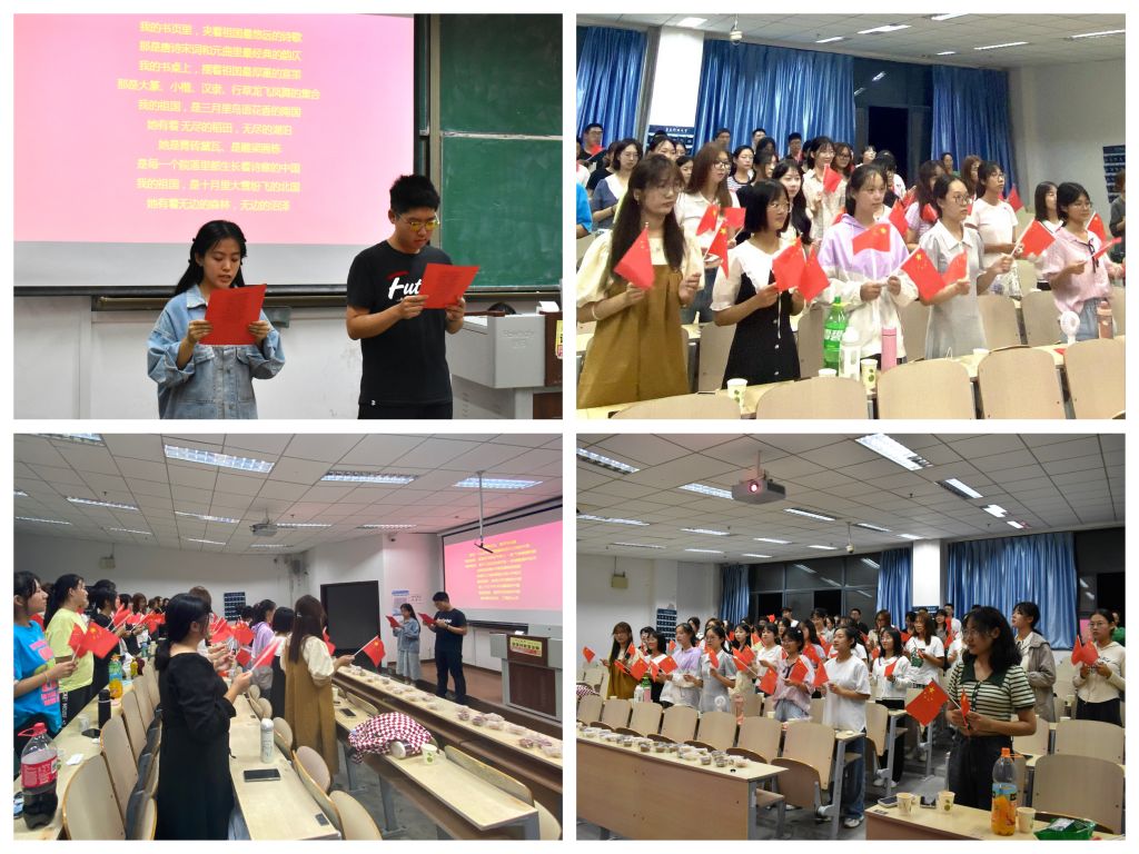 广泛开展红色经典诵读活动。新生们手举小红旗,在领诵人的带领下,集体朗诵诗歌《大写的中国》,于字里行间感受中华文化的博大精深和中国力量的亘古绵长。朗诵过程中,大家的感情真挚投入,声音悦耳洪亮,目光坚定有力,充分展现了经管学子的良好精神风貌。