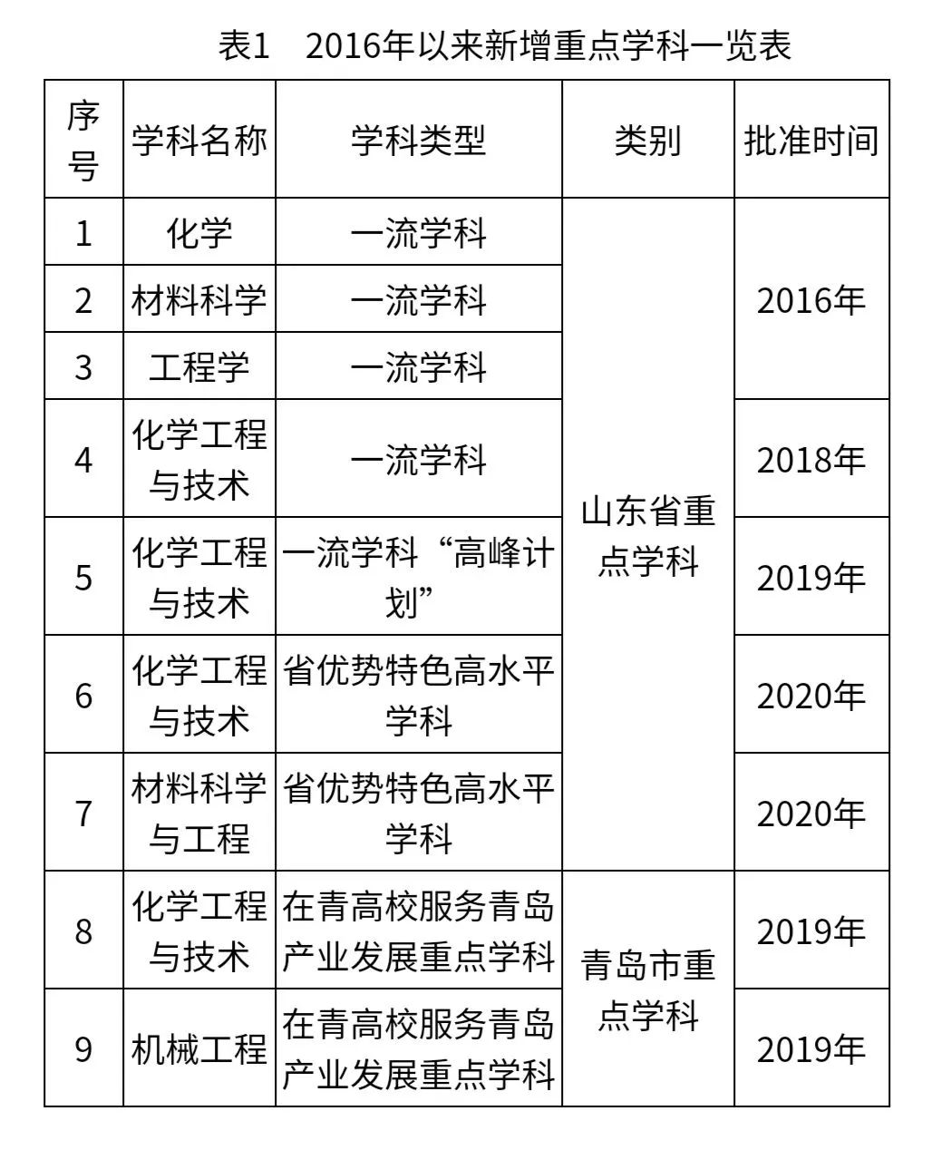 2016年化学、材料科学、工程学3个学科入选山东省重点建设“一流学科”行列;2018年化学工程与技术入选省一流学科,并于2019年入选省一流学科“高峰计划”A类学科;2020年化学工程与技术、材料科学与工程2个学科入选山东省“优势特色”类高水平学科,7mmtv