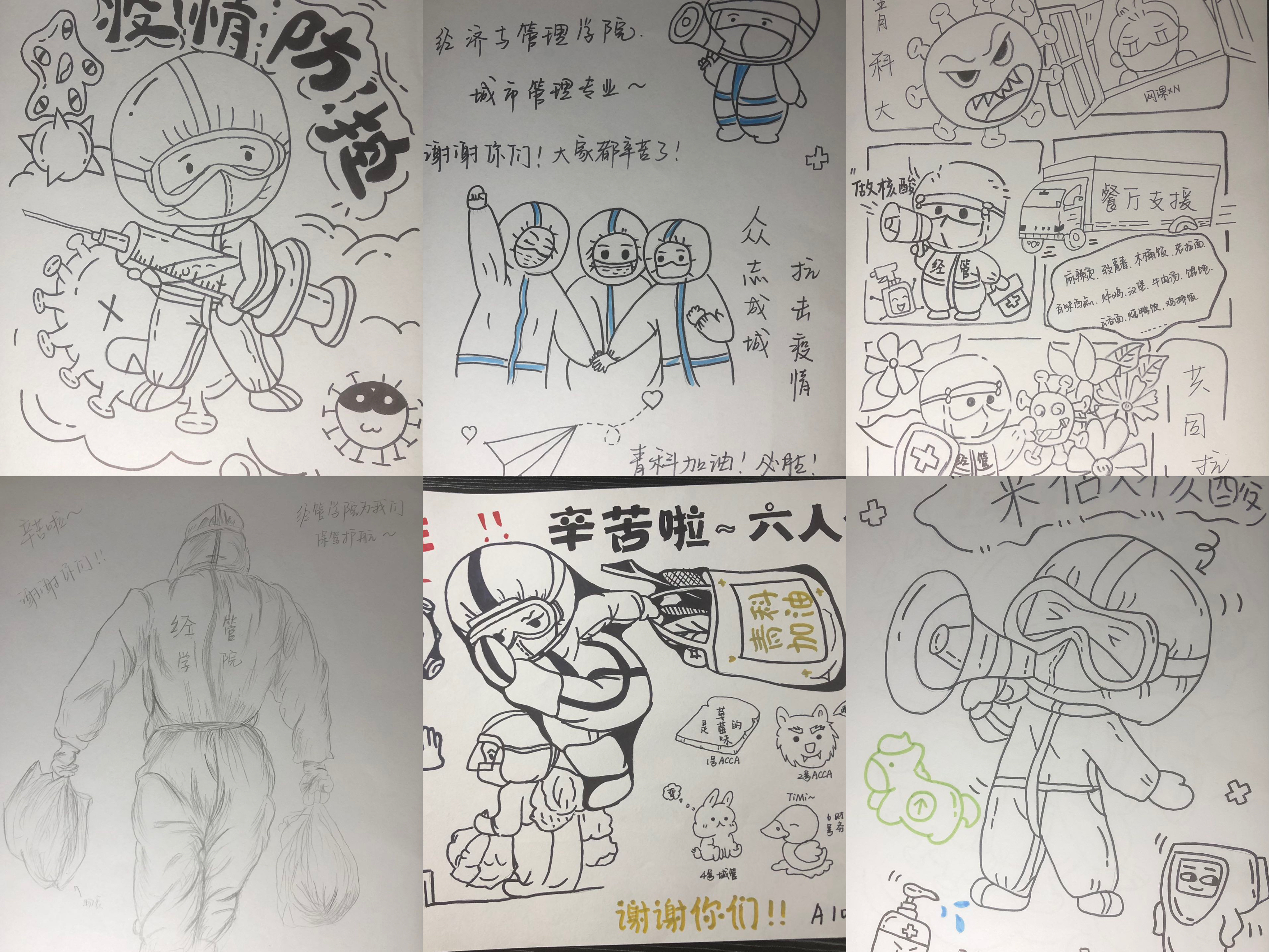 笔墨绘大爱,同心抗疫情。组织开展"翰墨寄情 同心抗疫"文创活动,通过征集书画作品引导学同学们以飘香翰墨书写无言感激,以手中颜料献礼志愿"大白",通过一笔一画表达对战“疫”英雄的敬意与祝福,展现战胜疫情的信心与决心。