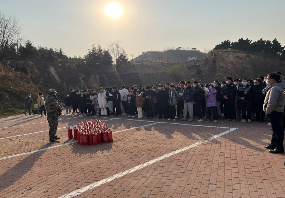 赵淑东老师首先讲解了消防安全应急知识与灭火器使用技巧,在发生火情时,如何正确地扑救、自救和逃生。随后由师生们自己动手实践,练习使用灭火器灭火。本次演练所用灭火器为干冰灭火器,师生们拨出插销,一手握住开启压把,另一手握住喷射喇叭筒,对准火源喷射,将火源迅速扑灭,两人一组完成灭火器使用的练习。