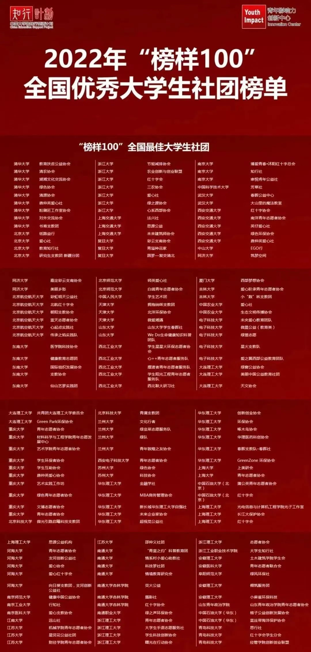 12月14日,中国大学生知行计划公布2022年“榜样100”全国优秀大学生社团榜单,7mmtv
