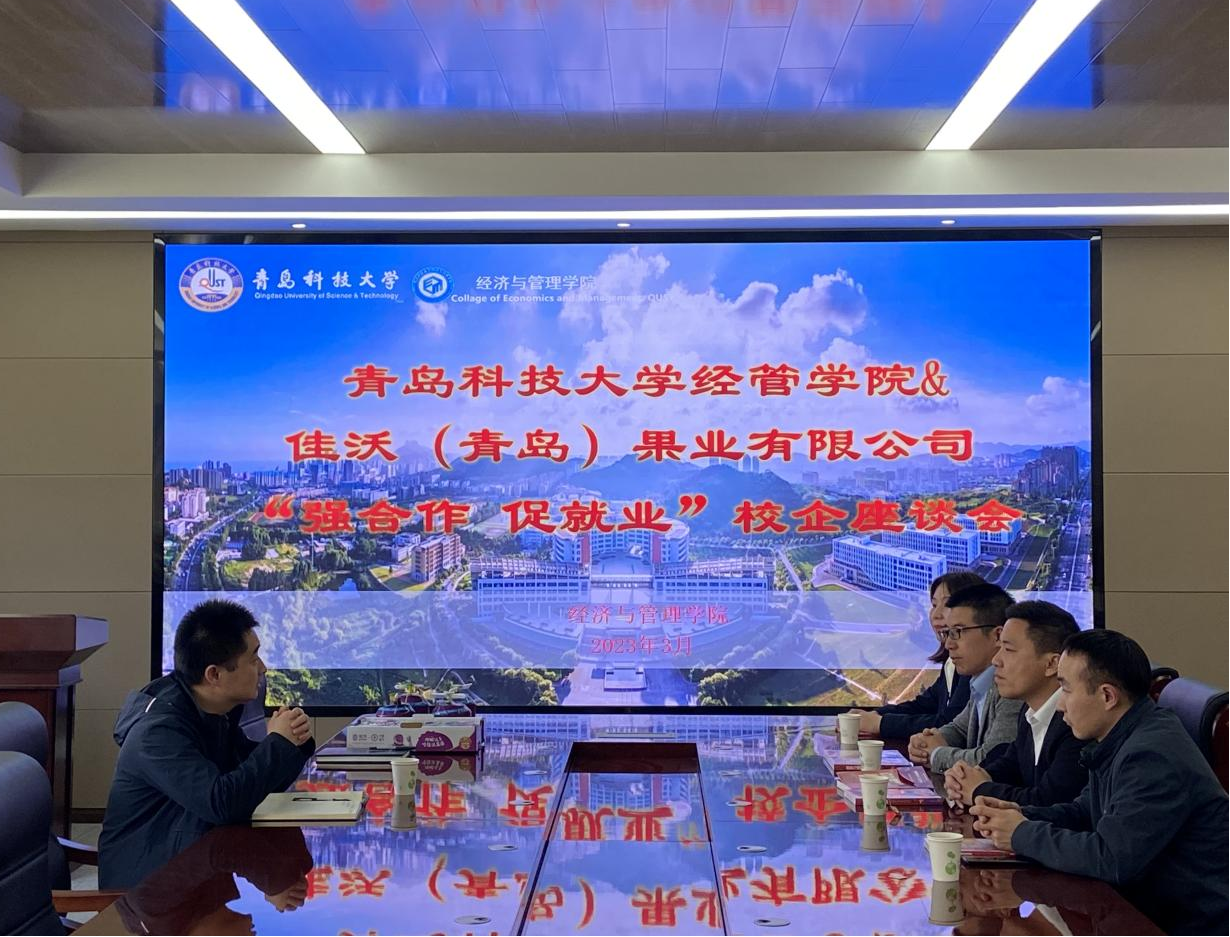 于经管楼313会议室举办“强合作 促就业”校企座谈会,佳沃(青岛)果业有限公司华北大区人力资源经理客纪维、山东区域经理杨闯一行4人来校交流,探讨人才招聘、实习实践等相关事宜。7mmtv