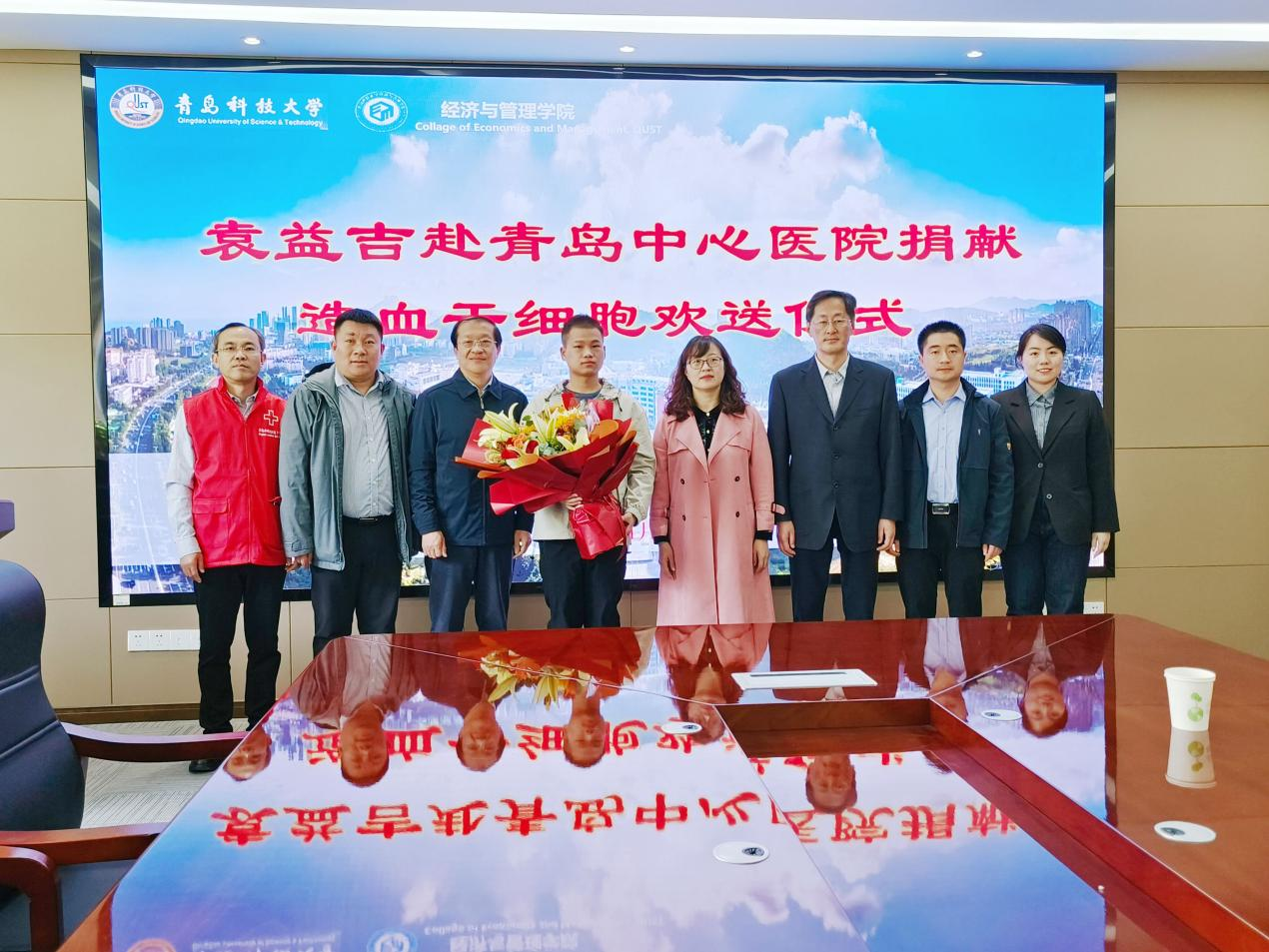 与崂山区红十字会举办崂山区第18例造血干细胞捐献志愿者袁益吉赴青岛中心医院捐献欢送仪式。党委学生工作处处长王丽、经济与管理7mmtv