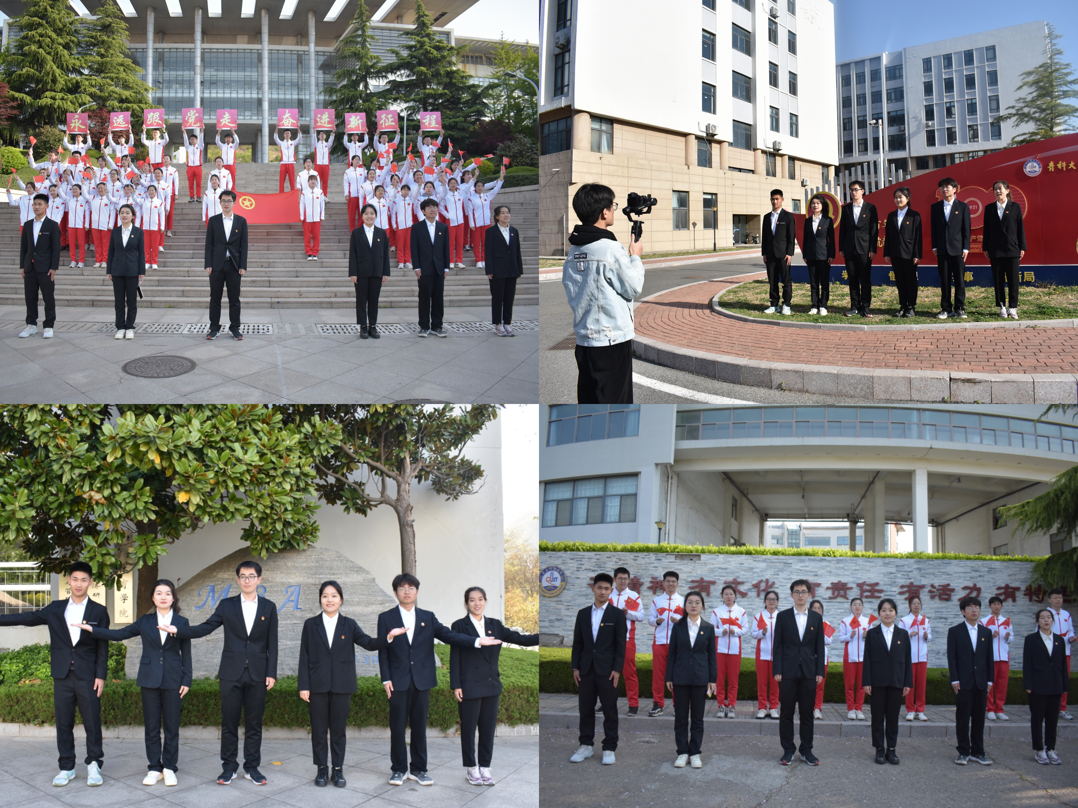 拍摄制作“致敬’ 五四’·奋斗者正青春”主题团课,青年学子们以诵为媒,激情澎湃、热情高涨,声声回荡的青春之声抒发着新时代青年不忘初心、赓续红色血脉的使命与担当,慷慨激昂的青春誓言表达了以史为鉴、开创时代未来的智慧与力量。"挺膺担当,奋斗有我!"团员青年将以崭新姿态续写时代辉煌。