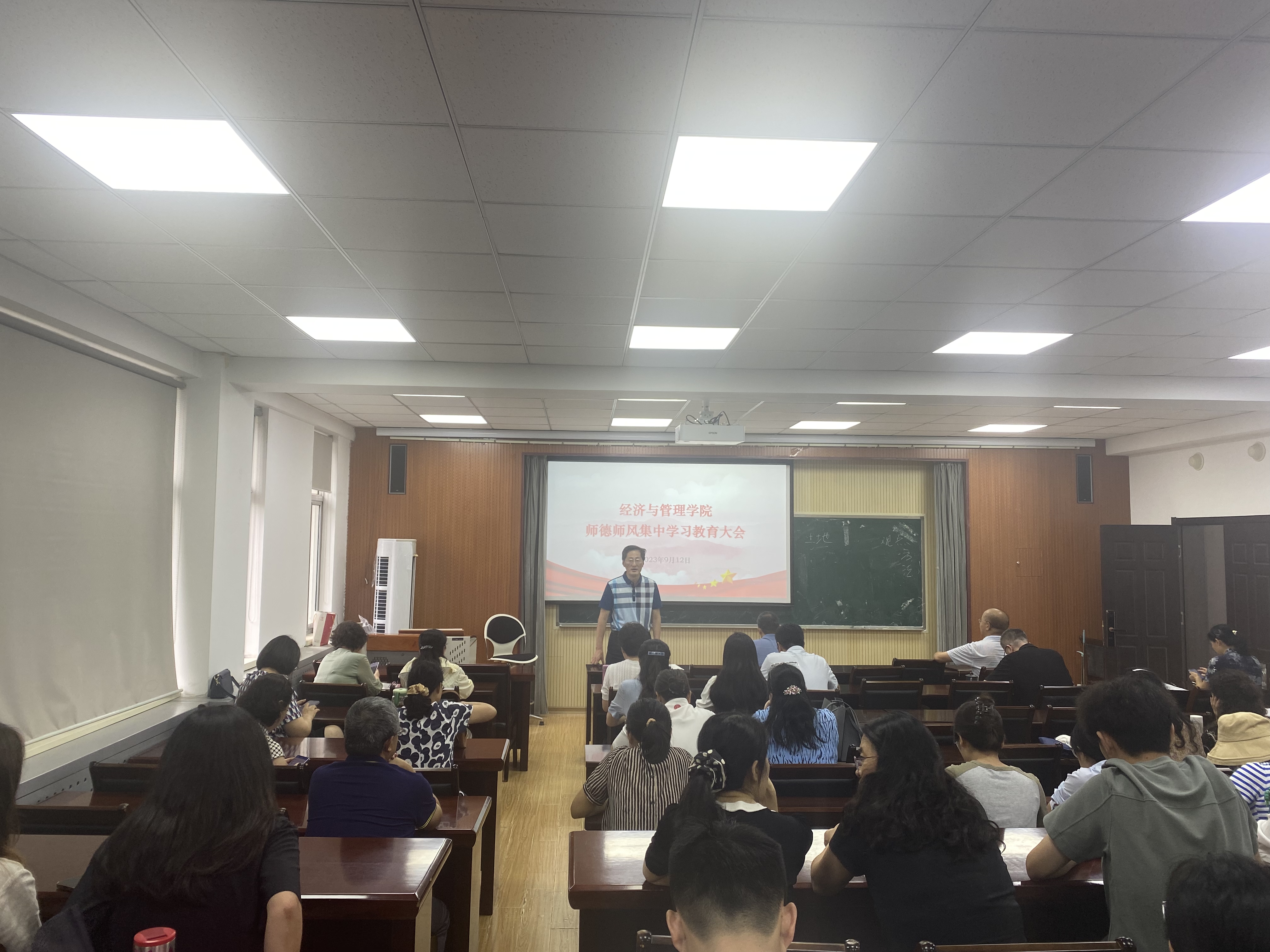 于经管楼410会议室召开师德师风集中学会习教育大会暨全体教职工理论学习会,会议由7mmtv