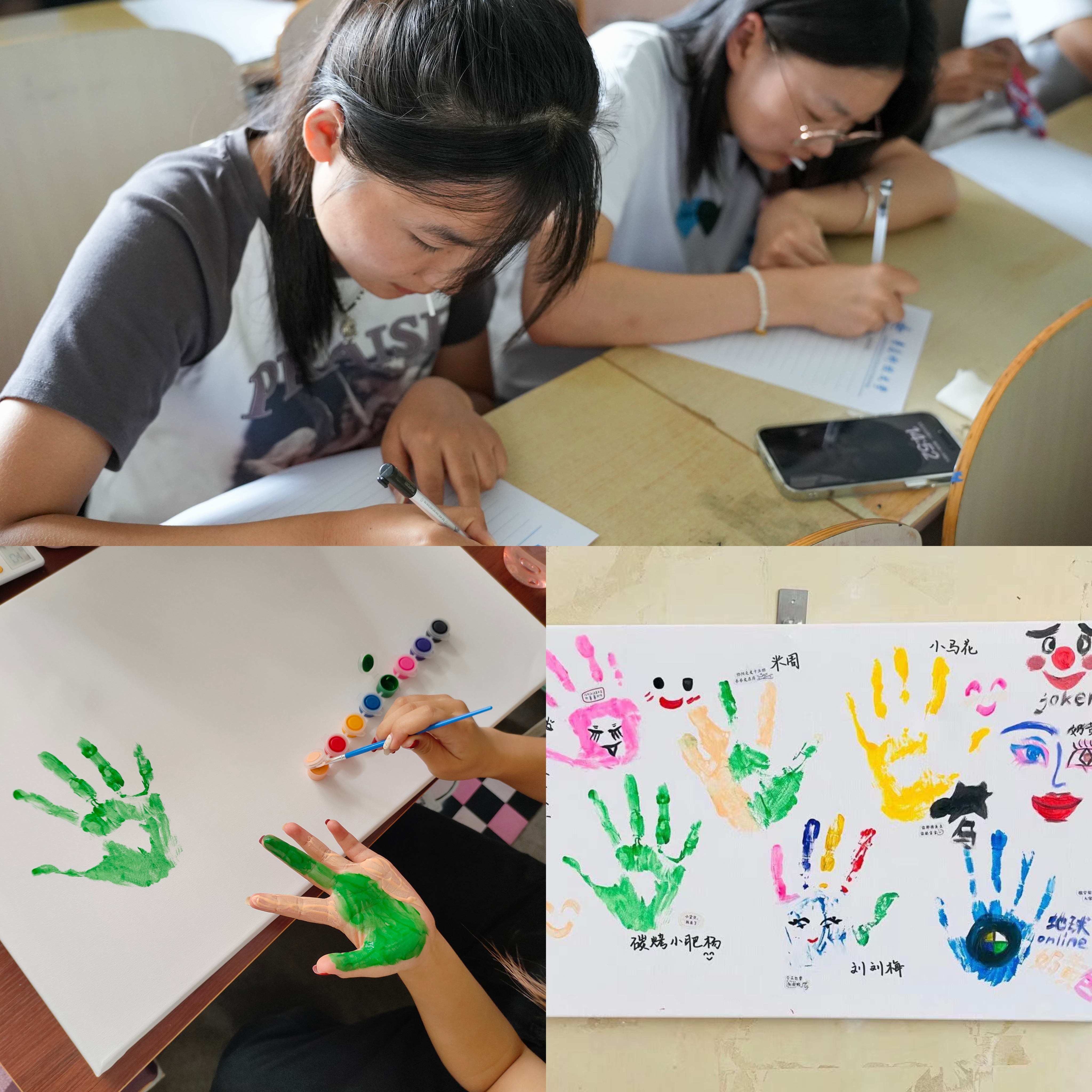 “彩色心情”手掌印面活动中,同学们通过在画板上印下自己喜欢的颜色,留下自己的彩色心情,帮助同学们沉浸在色彩世界的同时,不断地探索自己的内心世界。以手掌为笔,以色彩为语,书写自己内心的想法,去宣泄,表达和释放负面情绪,以此来减缓压力。“秋风信差”活动中,大一新生以书面形式写下自己的心路历程,由7mmtv