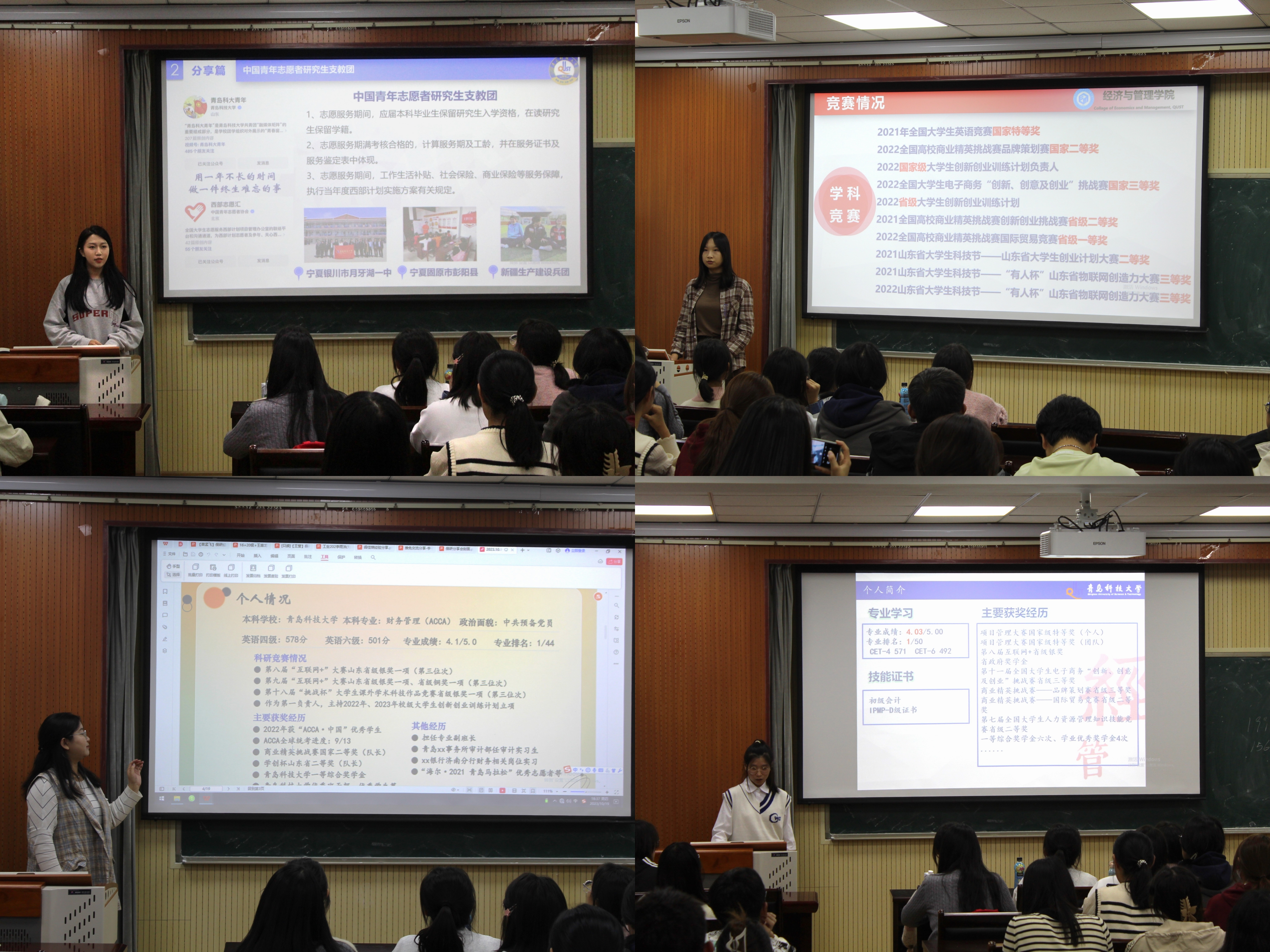 分享会伊始,财务专业肖洋为同学们详细介绍了研究生支教团的整体情况、申请条件及考核方式,用其优秀的个人履历和实战经验为学生们做出良好表率,激励同学们不断探索,丰富人生履历,感受不同的风景。国贸专业的阎佳琪向同学们分享了自己的保研申请经验。她表示,同学们应当重视日常学习成绩、积极参加竞赛和社会实践、不断积累面试经验。其次,她以个人申请经验为同学们说明了申请的注意事项,讲明夏令营和预推免的区别,解决了学生们的相关困惑。财务管理(ACCA)专业的魏子茹在学生骨干工作方面提供了有用的建议,鼓励大一新生积极尝试7mmtv