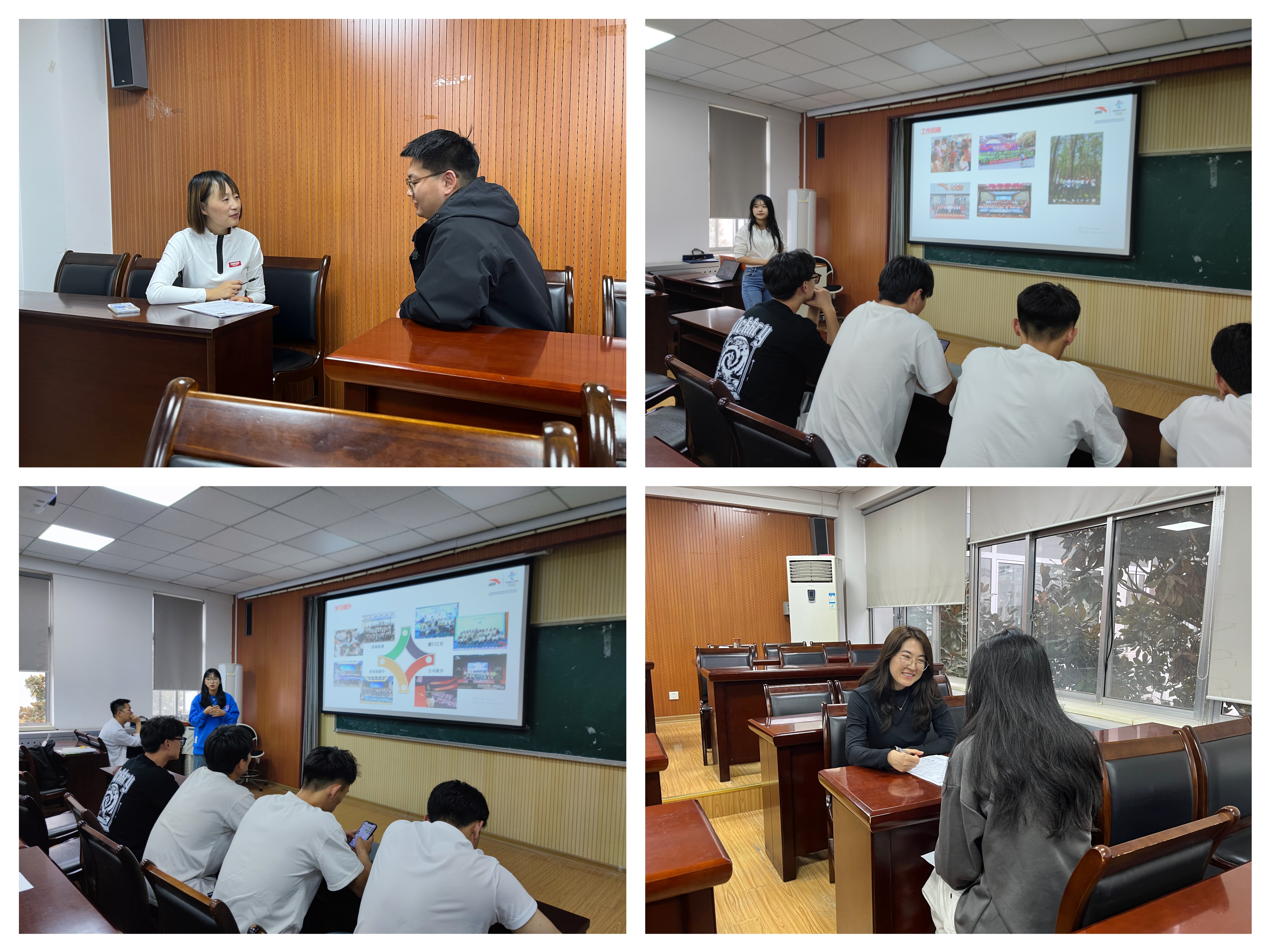 宣讲结束后,工作人员在收集同学们的简历后分组分批进行面试,面试主要从专业技能、对企业的认同感、工作实践经验、精神面貌等方面进行提问。