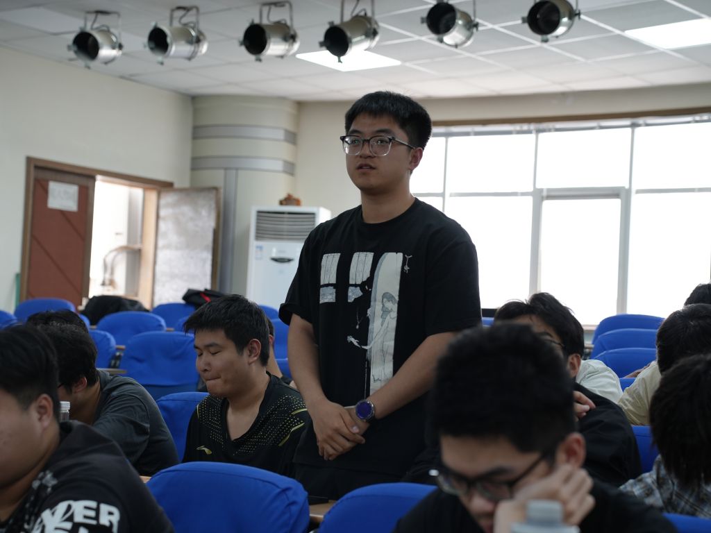 鼓励大学生参军入伍办法》,21级团支书刘雪祯带来《奋进新青年,共筑强国梦》国防教育主题微团课,阿布都守库尔·阿布都热合曼、鲁亦璨和王浩三位同学结合自身经历分享了他们的军旅故事和入伍初心,并与参会学生针对应征入伍相关问题进行现场交流问答。