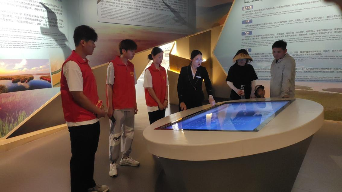 值得一提的是,在博物馆里的瞭望台中,团队成员们从望远镜里可以清楚地观察记录野生鸟类在湿地中生活气息的实景。团队成员们在团队负责人的带领下来到黄河三角洲鸟类博物馆,在工作人员的引导下,团队成员们学习了渤海海岸线变迁、水文气候的特点等知识,在多媒体互动中,从鸟类起源进化、湿地鸟类种类特点、鸟类迁徙等方面了解了相关知识,并利用望远镜细致观察了不同鸟类的特征,在科普中增进了对加强黄河流域鸟类保护的重要性的认识。