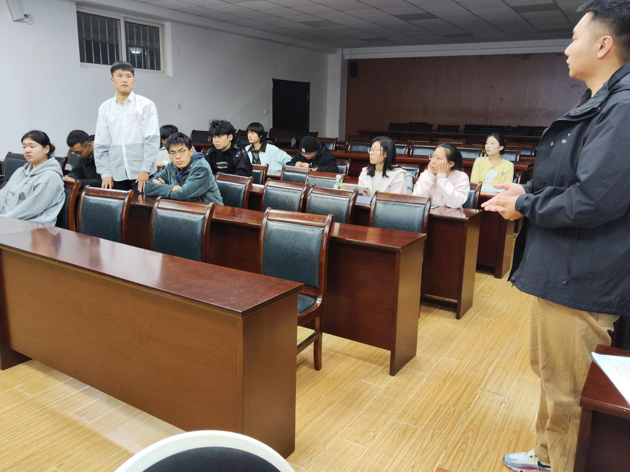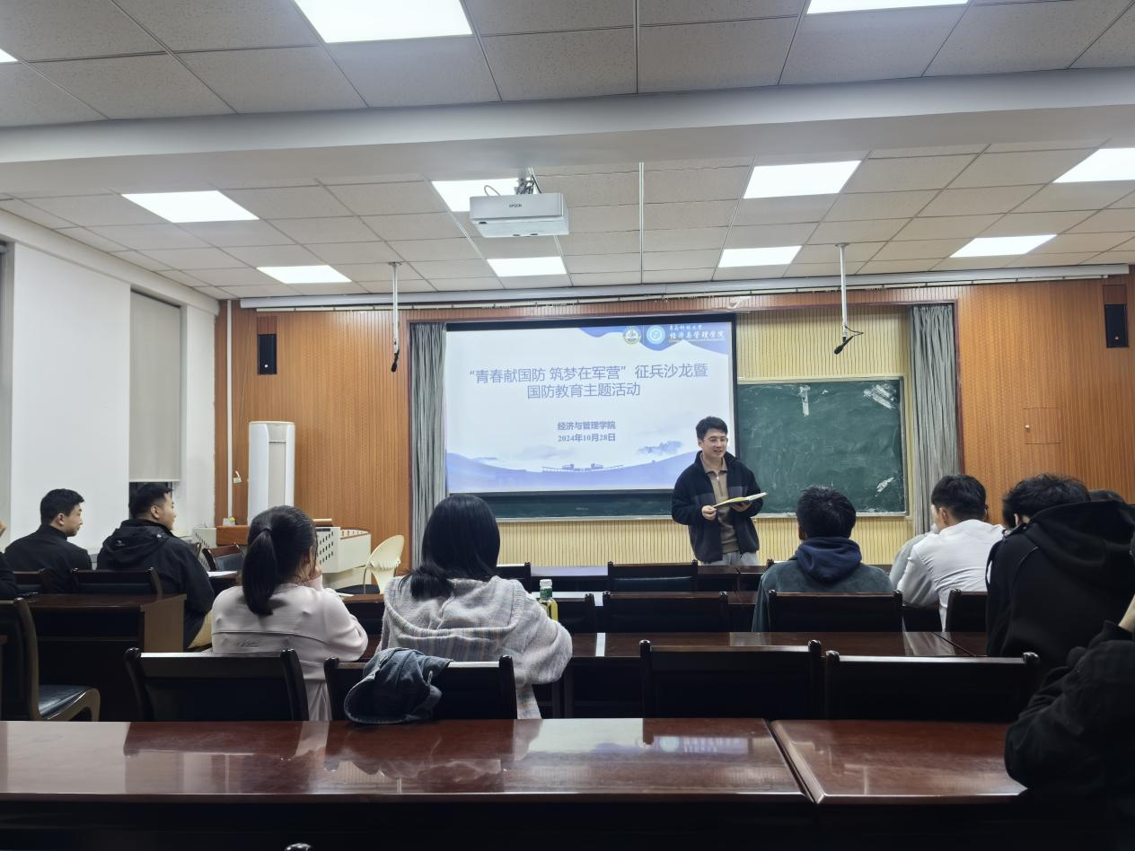 419举行,由21级辅导员王嵩主持。优秀退伍士兵学生代表王皓、马峻、王雨璇先后上台宣讲,分享了他们在军营中的经历与感悟,表达了对祖国的无限热爱。参会学生们认真听讲,积极咨询,表现出对征兵及国防事业的浓厚兴趣与坚定信念。