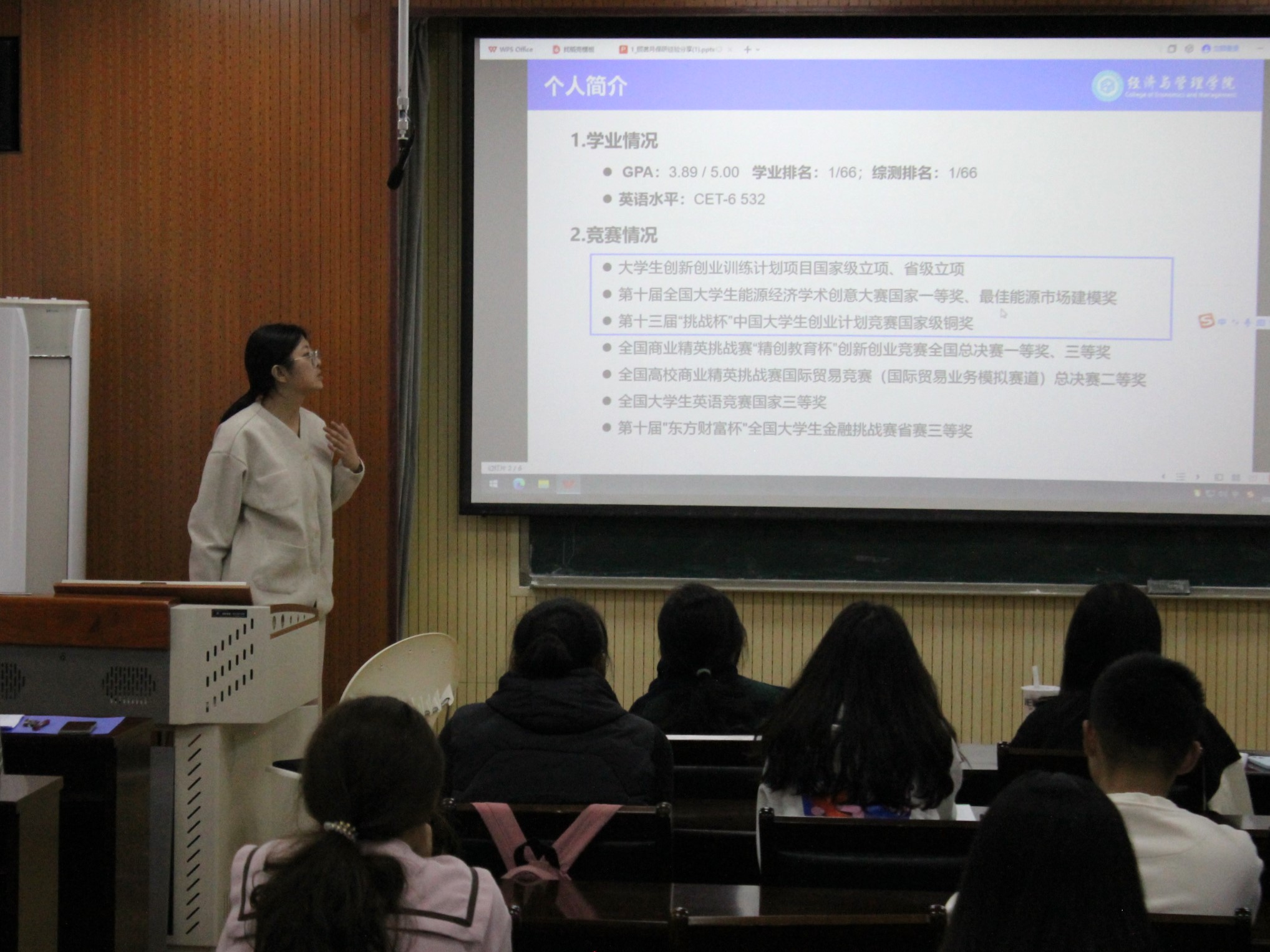 分享会伊始,辅导员郝家玮介绍了本次活动目的、各专业优秀学子以及活动流程,并对保研的重要性和意义进行了简要阐述,同学们兴致高昂,活动氛围浓厚。随后,各专业朋辈分享人分享推免经验。