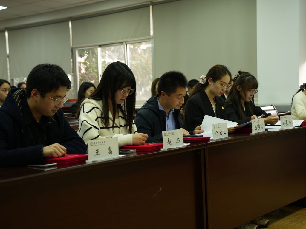 往届优秀学员代表李萌做分享发言,她表示作为新时代青马班学员及大学生骨干,要珍惜此次培训机会,努力从自身做起,筑牢思想根基,自觉用马克思主义中国化的最新理论成果武装头脑,在强国建设、民族复兴的时代征程上接续奋斗。培训班学员代表王雨涵做表态发言,她表示作为青马学员,要积极响应团委号召,要做眼中有光、脚下有路、肩上有责的新青年,以坚定的理想信念投身到国家建设的伟大事业中去,践行青年马克思主义者的使命担当。牛宝卫和辅导员老师为2023—2024年青马优秀学员颁发证书,牛宝卫为2024—2025年青马培训班授旗。