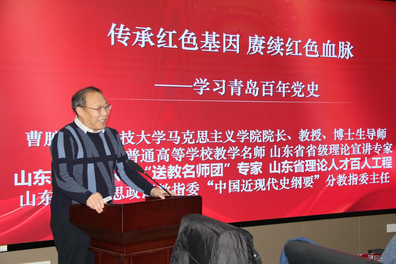 院长曹胜为党员讲授《传承红色基因 赓续红色血脉-学习青岛百年党史》党课,全体党员认真学习青岛党史发展,感悟党史精神,牢记英模事迹。会后,全体人员前往校史馆参观,在讲解员的引领下,大家认真、细致的观看了校史馆内的各类展品,一起重温科大自建校不断发展壮大的风雨历程,深切感受积淀深厚的科大精神。