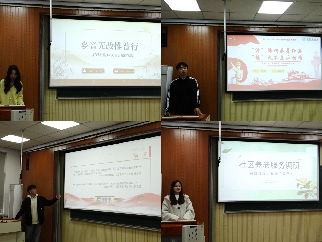 交流会上,23级与24级优秀学生代表牛志强、闫冰、袁玟、董仕翰等11位同学围绕““青鸟计划”“返家乡”“服务社区”等内容,从活动内容、活动成果、媒体宣传、社会影响等方面,以PPT、视频等形式充分展示社会实践活动取得的丰富成果。经管学子以寒假社会实践为契机,发掘家乡红色资源,促进乡村振兴,实现思政教育与社会实践活动的知行合一,体现出经管学子的人文关怀精神与青年责任担当。