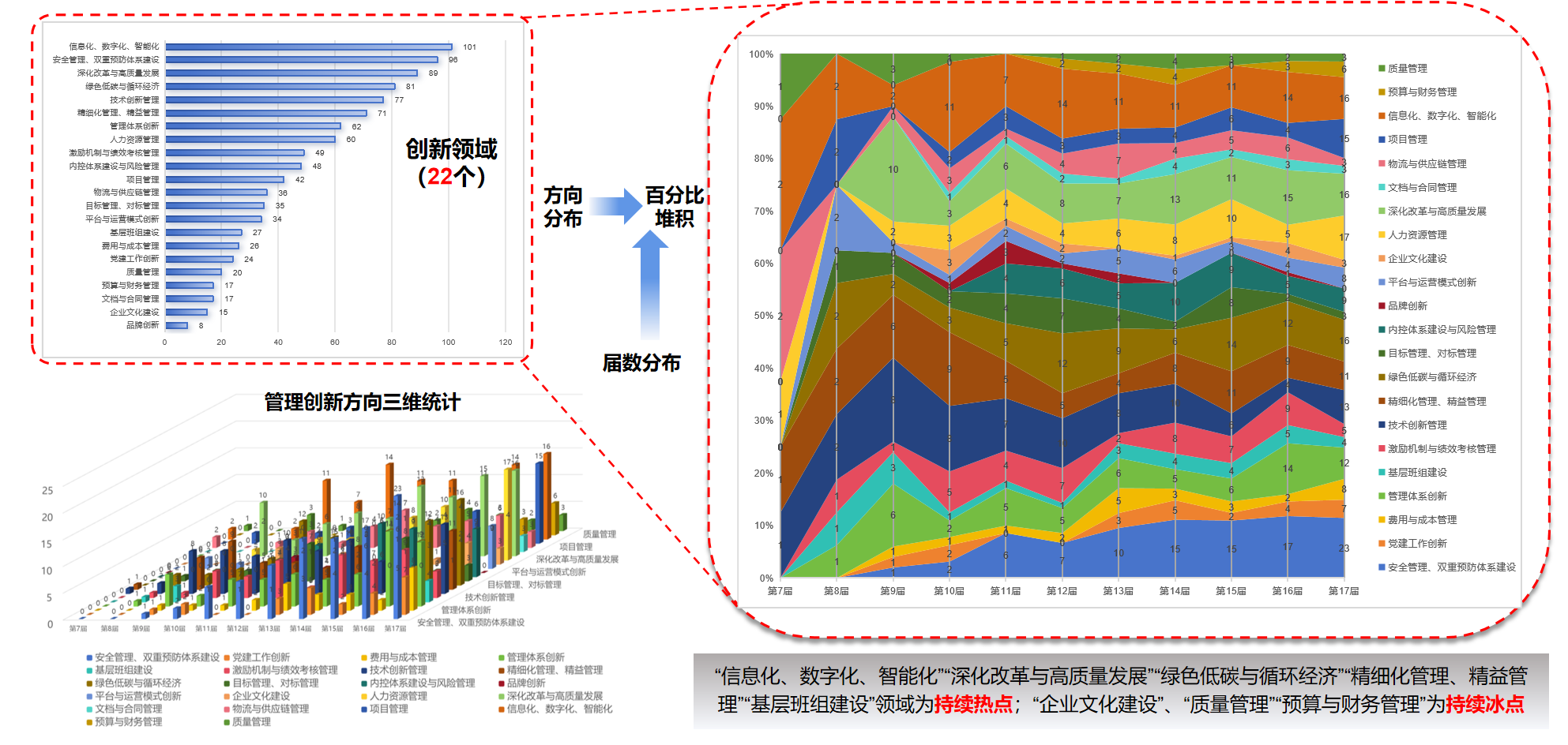 报告指出,第十七届石油和化工企业管理创新项目总数达217项,同比增长51%,创历史新高。通过词云图与共现图谱分析,"数智化转型""绿色低碳""党建引领""绩效考核"等关键词高频出现,反映行业对技术革命与组织变革的深度融合需求。获奖项目覆盖23个省市自治区,河南、陕西、山东位居前三,华东、华中、华北地区占比47%,形成区域创新集聚效应。