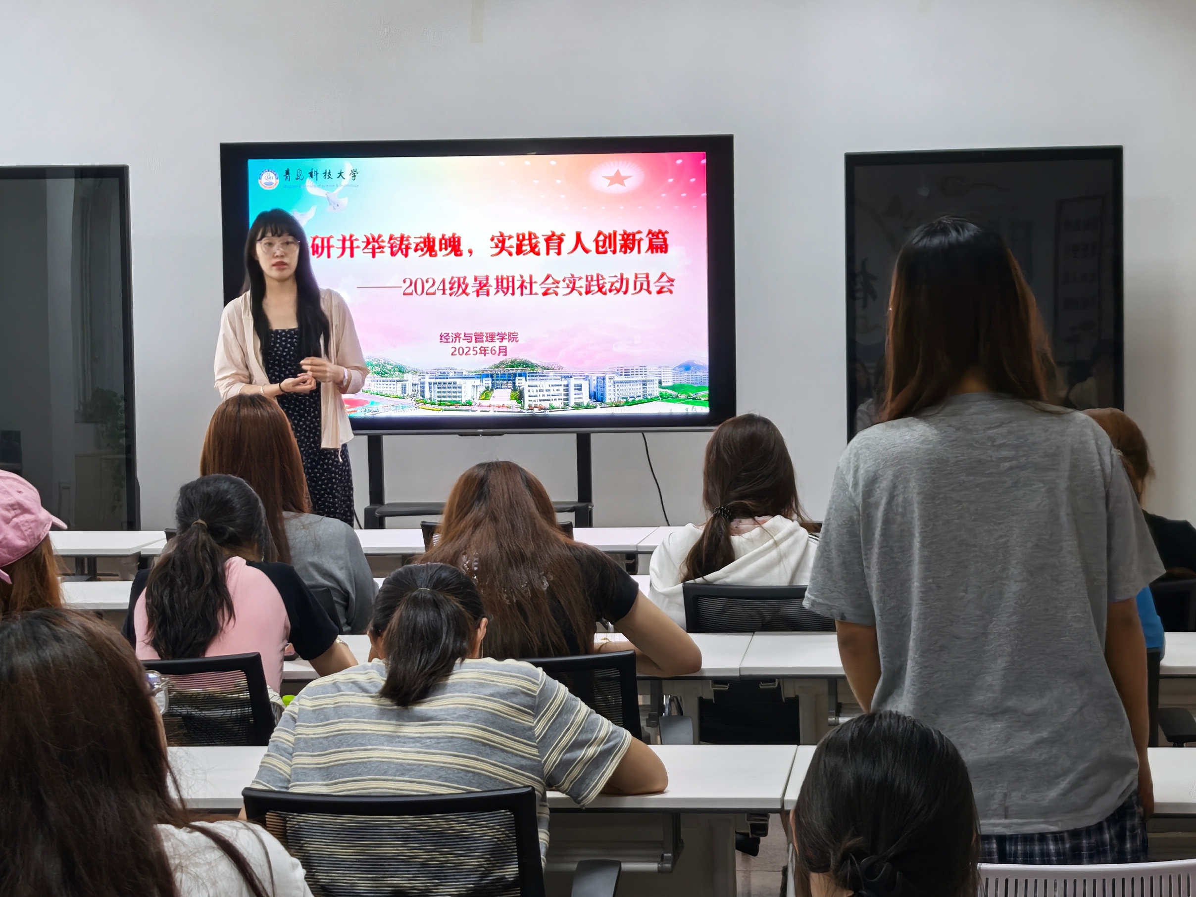 为将回信精神转化为实践动能,辅导员结合“百万大学生进社区”、三下乡、青鸟计划等政策,同步召开暑期社会实践动员会。郝家玮强调实践是打破“纸上谈兵”、实现专业知识与行动能力双向赋能的核心路径,鼓励学生走进社区治理前沿和企业生产一线。根据不同班级的专业特色,制定 “一专业一方案”备忘录,让青年学子在知行合一中投身社会建设。