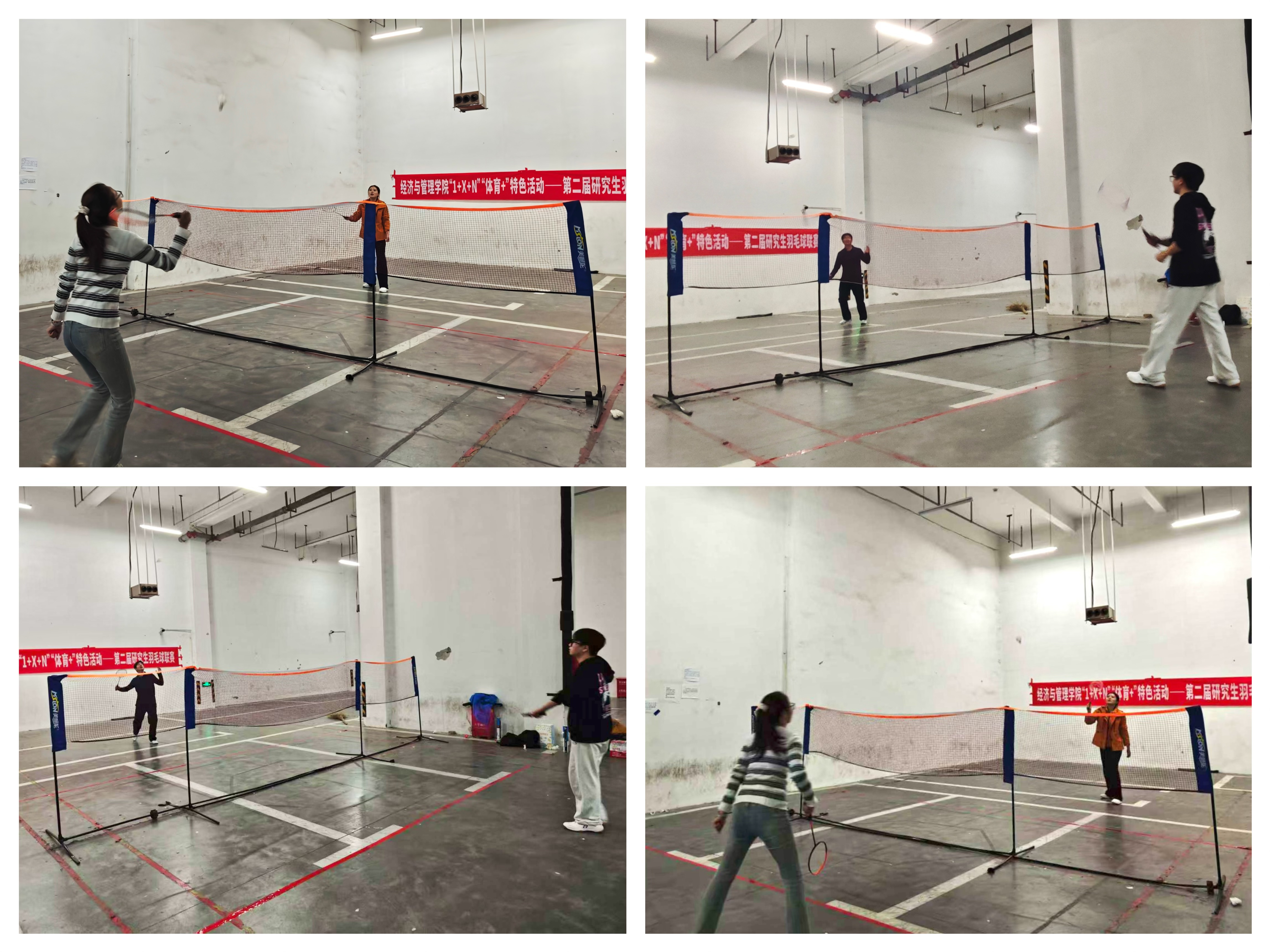 本次联赛设置男单、女单、混双三个竞赛项目,覆盖不同运动需求。赛场上,选手们身姿矫健,网前截击、后场扣杀、精准吊球等精彩动作层出不穷,每一次挥拍都凝聚着专注与力量,场边观赛师生的喝彩声与加油声此起彼伏,充分展现了经管研究生昂扬向上的精神风貌。