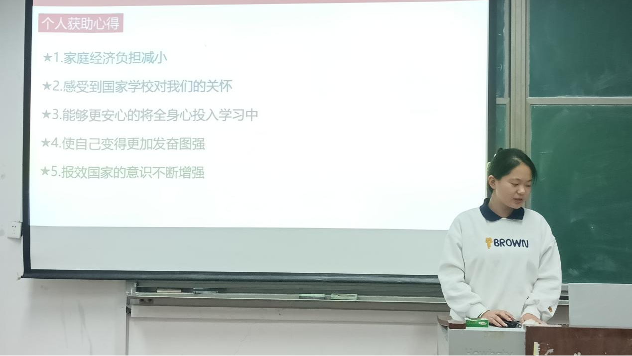 张茹倍讲述了国家资助政策为其解除经济顾虑、助力安心投入学习成长的暖心历程。她表示,资助政策是寒冬中的暖阳,是逐梦路上的支撑。它不仅提供物质层面的保障,更赋予青年学子直面挑战的勇气,号召大家将这份温暖转化为前行动能,以优异成绩回馈温暖关怀。