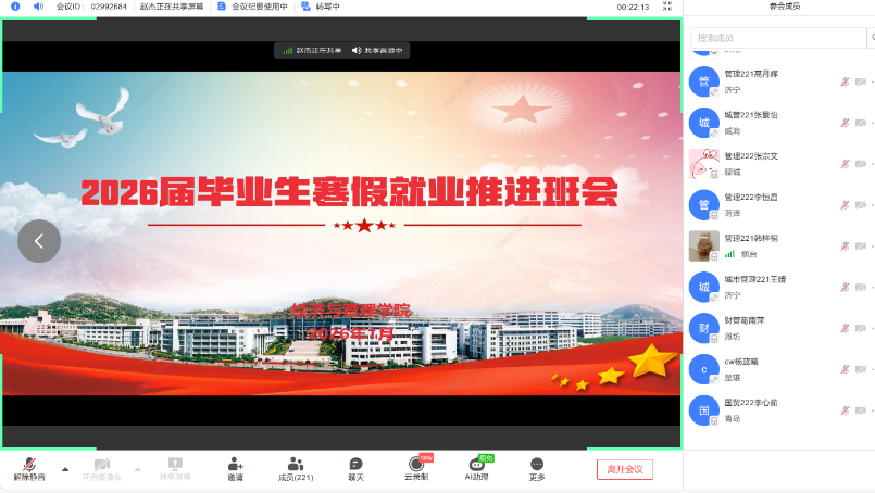 针对各年级学生特点,结合毕业生就业指导、心理疏导、学业帮扶等重点工作开展云走访。依托“1+N”帮扶小组,为毕业年级学生推送“就业赋能包”,对接“经管励志实习岗”并开展参军入伍动员,助力学生完成从“扶困”到“扶志”“扶智”的跨越。