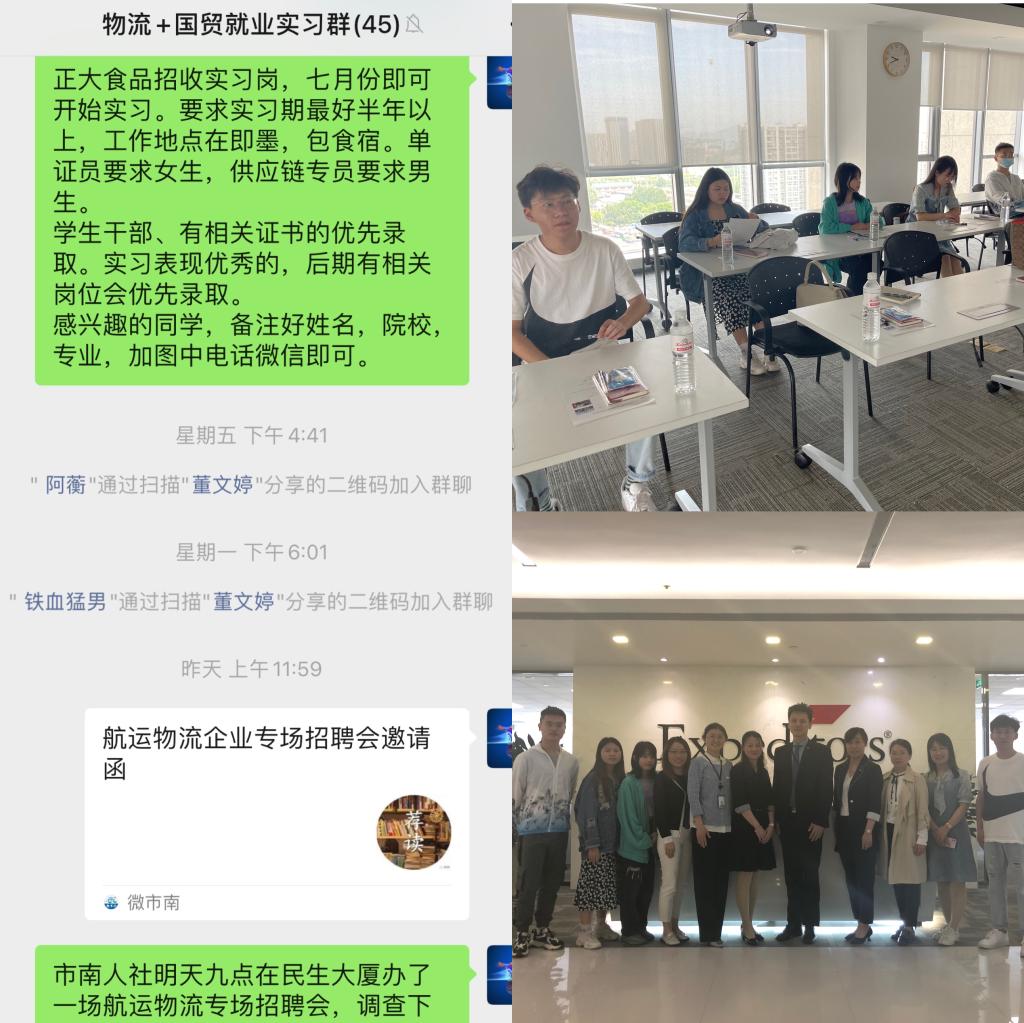 通过前期对接考察,物流管理系遴选并走访了多家企业,力求为学生提供适合发展的优质平台。结合企业需求和专业特色,物流管理系和国际贸易系共同组建了“物流+国贸就业实习群”,共享企业需求信息,协同发展促就业。近日,物流管理系和国际贸易系的师生代表共同走访北京康捷空国际货运代理公司,双方就校企实习共建基地与未来合作发展进行了深入交流。该公司是全球领先物流公司,《财富》杂志500强企业,办公地点遍及全球103个国家,目前核心业务项目包括国际物流、海关与合规、仓储与配送等。公司负责人表示愿意为在校生提供完整的培训体系和优质的实习岗位。到场的同学们纷纷被公司良好的工作环境和优秀的7mmtv所吸引。