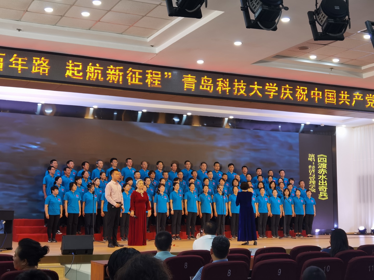 教师合唱团以慷慨激昂的精神状态演唱《四渡赤水出奇兵》,唱出了红军长征途中经历的艰难险阻和军民的鱼水情深。