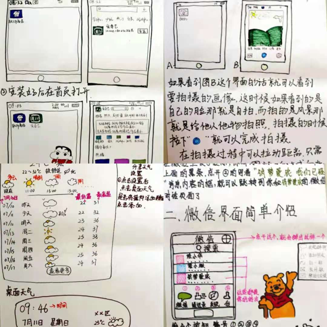 电商是当前国内偏远地区扶贫的重要方式,也是如今大学生们创业的渠道之一。队员们在走访村民的过程中发现村里很多老年人用的都是智能手机,但大多都不会操作,只会用来接打电话。通过集体讨论,我们最终手绘了智能手机的使用方法一一为老人们讲解,并结合“北屿星创”电商平台,为老人们介绍电商营销的新思路。山区农村一般地处偏僻,即使当地特色农产品丰收,运不出来,卖不上价一直是致富的大难题。而电商平台帮助农产品上行,打开销量出口,成为了一个百试百灵的致富方案,通过此次活动,学生志愿者们开拓了科技扶贫的思路,获得了电商带货的启发,进一步明晰了志愿服务的方向和内容。