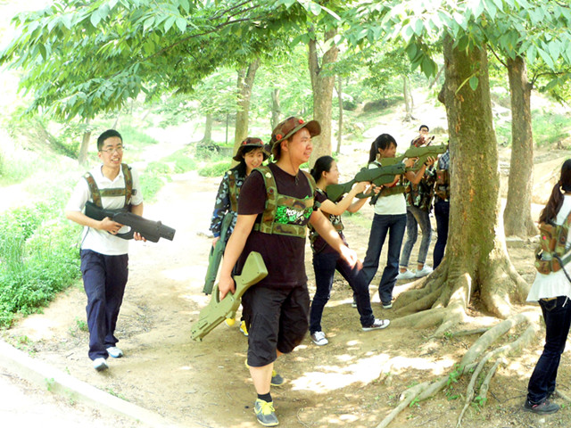 活动内容以真人CS联合野外作战形式展开,进行一场模仿军队作战的训练,同学们都穿上各款军服,手持玩具BB枪,配备各款野战装备,穿梭丛林之间,展现各种队形阵势,个人技巧,全部投入扮演一个士兵或将领的角色。在征途真人CS俱乐部的专业教练的指导下,两院研究生分为“飙风红队”和“锋速蓝队”两个小组,进行了联合对战的"歼灭战"、战霸搏击的“夺胜战”、“无间道”的“伏击战”等五大战役。其中联合对抗战役要求各队在队长的带领下,采取连续、防御、心理等战术,在20分钟内歼灭敌方。两队队员齐心协力,队员之间相互鼓励、相互帮助、相互协作,并且相互信任,最终由飙风红队取得了联合对战的胜利。在对战模式和仿真性极强的枪械武器系统下,活动充分调动了大家的团队协作与反应能力,并使同学们重拾童年游戏的团队合作精神。战役结束后,研究生们在榉林公园举办了一系列的素质拓展小活动,增进了了解、加深了友谊。