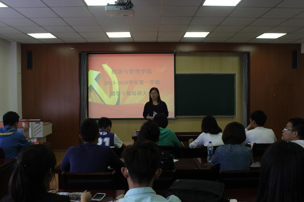 首先,丛书记简单概括了此次培训大会讲解的三方面内容。分别是:学生干部必须具备的素质能力、工作当中必须坚持的原则、学生干部应该处理好的几个关系。随后,她深入展开这三方面内容,向大家一一讲解。她要求学生干部要不断提高政治、管理、业务素质以及分析解决问题、总结概括、执行反馈能力。强调学生干部要始终坚持主动性、创新性原则,坚持民主集中制的工作方法,要有大局观念、服务心态。同时,作为学生干部要处理好自身与同学、其他干部及老师之间的关系,更要处理好学习和工作的关系。