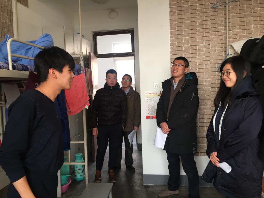 刘跃宁带领分团委辅导员逐层查看学生住宿状况,针对宿舍卫生、违规电器、违规物品及防火、防盗等诸多方面排查学生宿舍中存在的安全隐患。询问学生假期离校安排,了解离校时间,叮嘱学生们回家注意交通安全,离开宿舍时一定要切断电源,关好门窗。