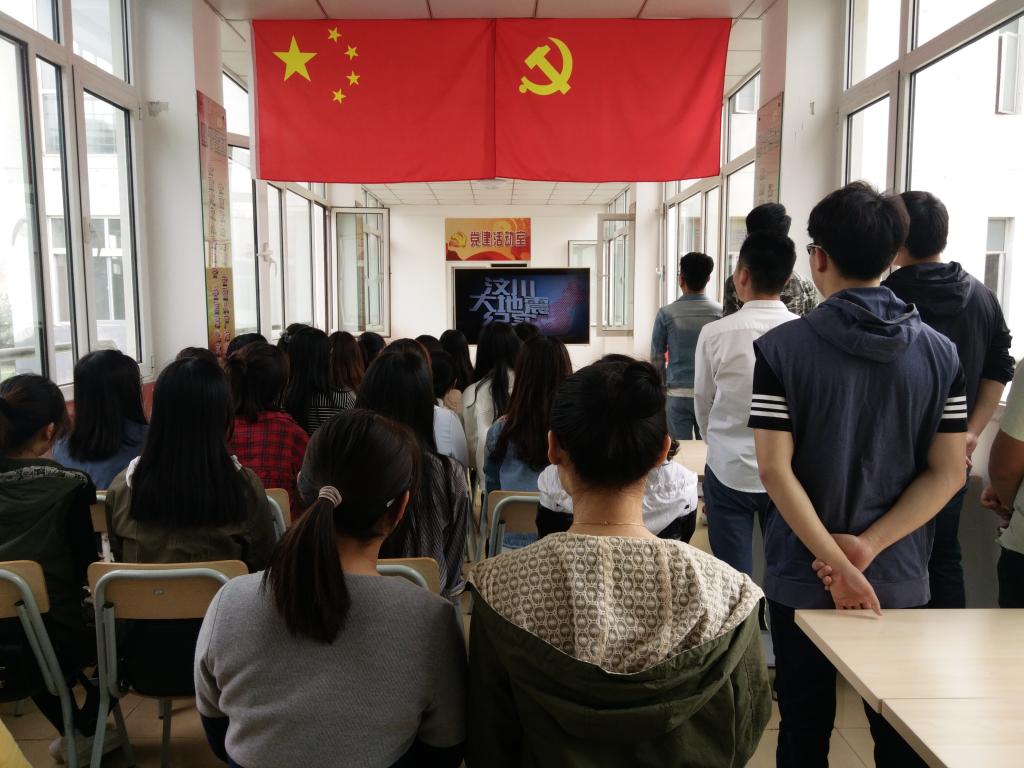 爱国教育进课堂,激发爱国情怀。组织大一到大三学生课前五分钟观看纪念汶川地震九周年短片,通过影视资料重温灾难时情景,使学生体会中国人民万众一心、众志成城的精神力量,体会民族精神的伟大内涵。