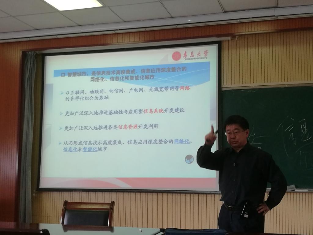 为城市管理15级学生做了一场精彩的关于智慧城市的专题报告。报告指出,智慧城市是信息技术高度集成、信息应用深度整合的网络化、信息化和智能化城市。张教授说:“智慧城市并不等于智慧化的城市,而应是'智'+'慧'的城市,这里的智指信息化,而慧则是指人性化”。讲解中张教授将正反例穿插,声情并茂地系统讲述了智慧城市的概念与应用,还引述了与城市管理专业紧密联系的"智慧城管"的概念,并且提倡“我们要用工匠的精神来搞城市建设”。在智慧城市的重要性方面,张教授指出:“一个城市如果以'智慧城市'为建设灵魂和主线,这个城市就活了”。对于学生来讲,这不只是一场专题报告,更是一次专业领域的思想启蒙课,感谢张教授!