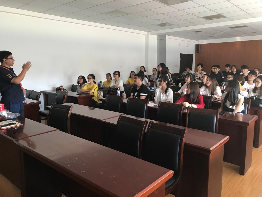 物流管理专业于经管楼505室举行毕业经验分享会。出席本次分享会的嘉宾有物流管理系主任吴成锋老师、物流管理系副主任索琪老师、京东山东人力资源部经理、2009级物流管理专业优秀毕业生毕德超以及2014级物流管理专业全体学生。
