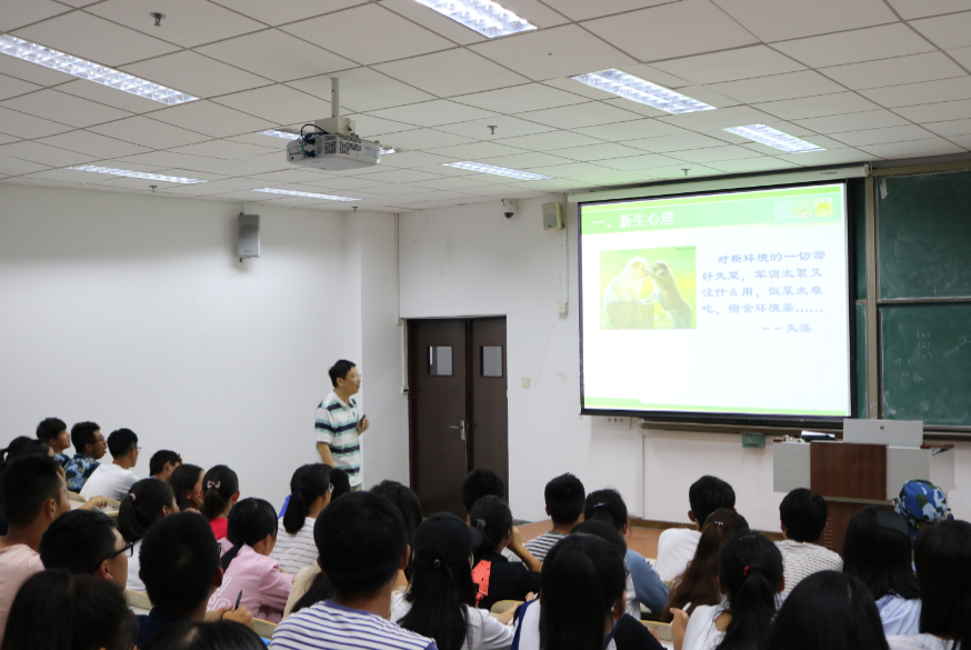 办公室、分团委老师们从新生心理、新生适应(包括环境适应,学习适应,人际适应,心理适应)、求助途径和中心简介四个方面向同学们系统地阐述了新生可能遇到的各种问题以及解决办法,引导新生尽快地适应大学生活。