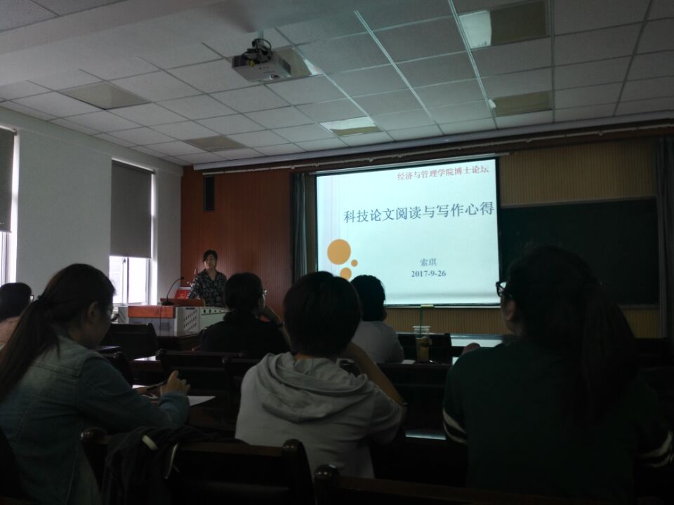 随后,教师代表索琪作了题为《科技论文阅读与写作心得》的报告。索琪老师向同学们介绍了超网络的发展历程,并结合自己的经历,就文献阅读、论文写作、投稿和修改四个方面与同学们进行深入的交流。