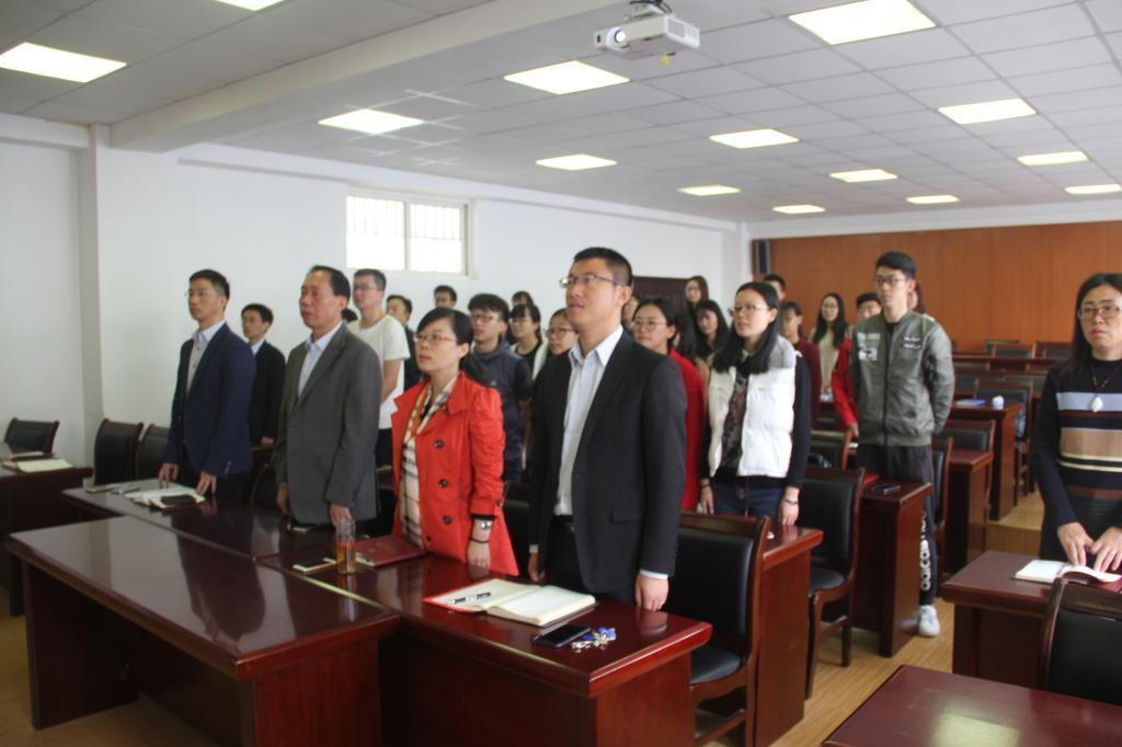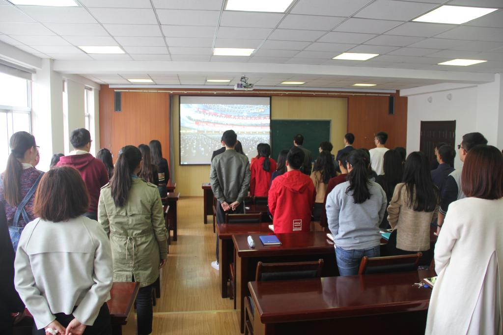 领导班子成员、全体师生党员齐聚经管楼419会议室,一同观看了开幕式的现场直播。