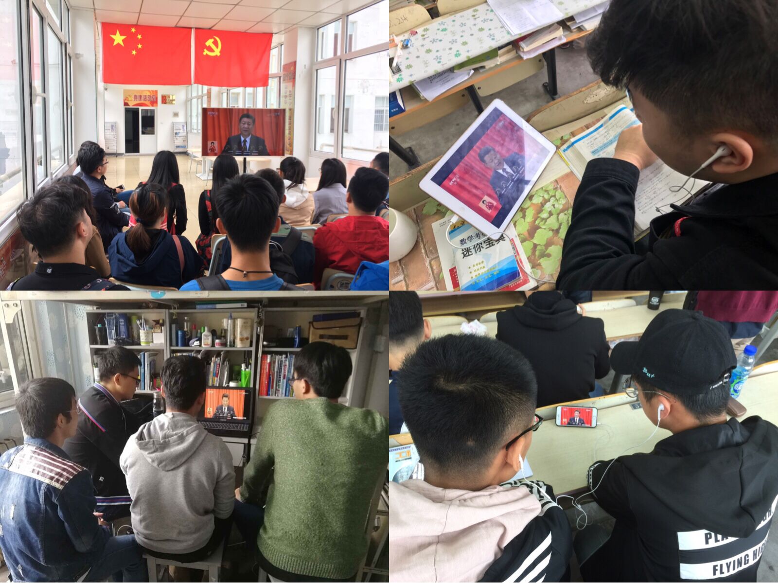 入党积极分子、学生干部以及广大青年学生自发组织在分团委办公室、党建活动室、宿舍收听收看中央电视台、中央人民广播电台、人民网等主流媒体关于十九大开幕的实况转播。共同聆听了习近平总书记的工作报告,同步感受了人民大会堂的庄严气氛和阵阵掌声。