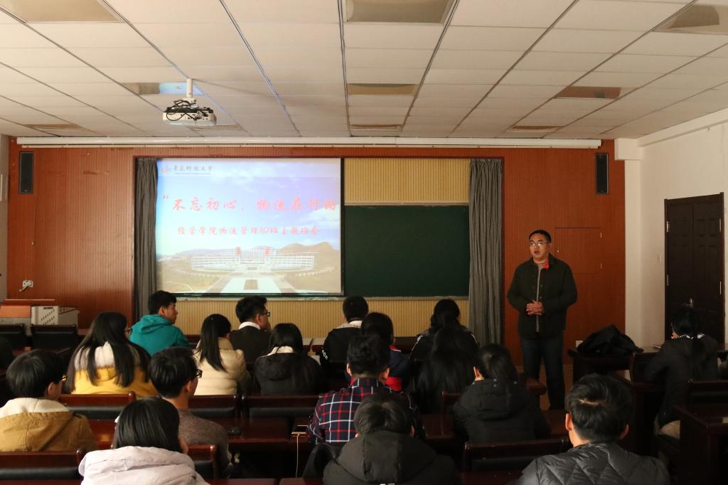 12月26日,国际交流与合作处副处长张大伟走进联系班级物流161班,参加“不忘初心,物流在行动”主题班会,与同学们共话当代大学生如何以实际行动学习、宣传、贯彻十九大精神,畅谈新时代大学生的理想目标。