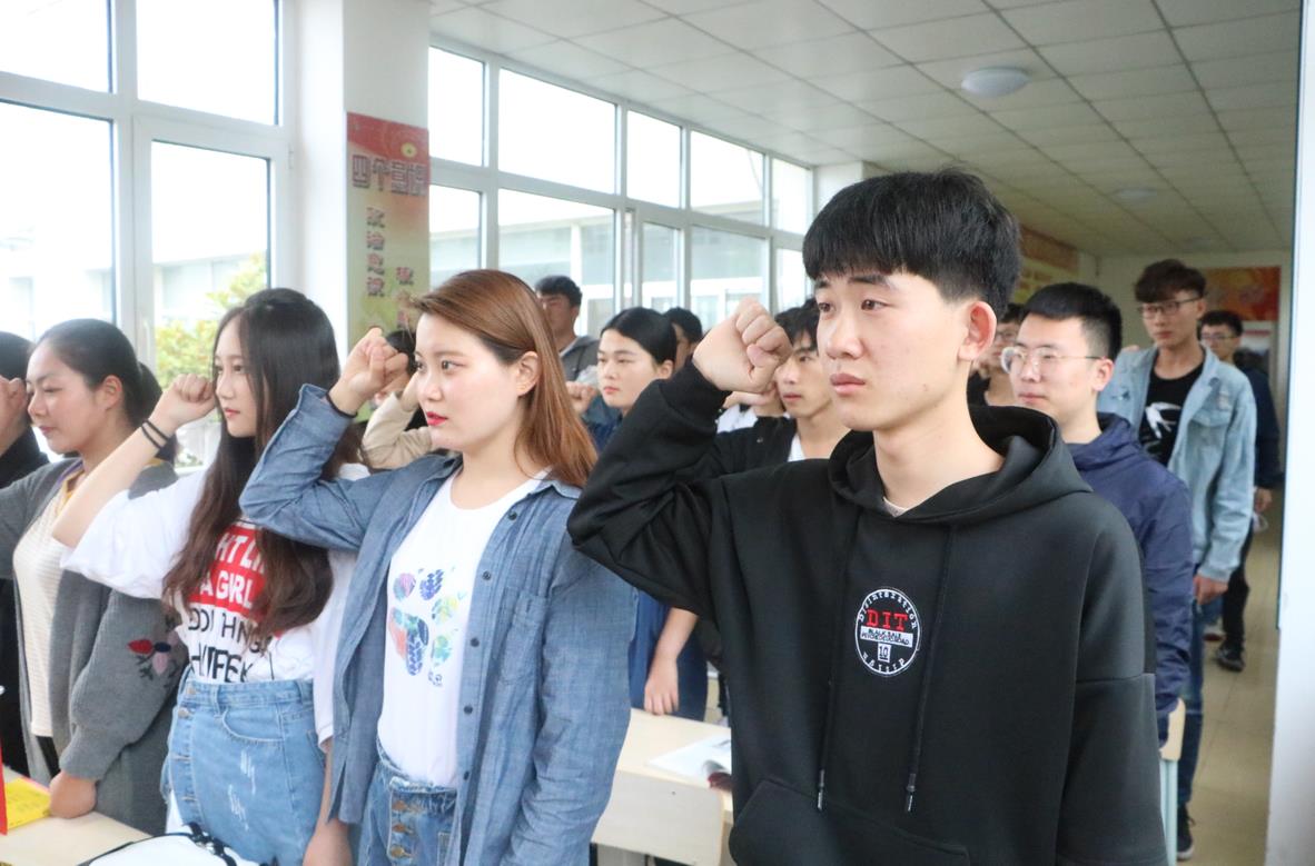 重温入团誓词,争做新时代青年。重温入团誓词在雄壮的团歌中开始,全体团员面向鲜艳的团旗行注目礼。礼毕后,全体团员高举右拳重温入团誓词,“我宣誓,我志愿加入中国共产主义青年团,坚决拥护中国共产党的领导,遵守团的章程,执行团的决议……”,他们声音洪亮,气势激昂,铿锵有力的誓词深深地烙印在每一位团员心中。通过重温入团誓词仪式,坚定了青年团员“不忘初心跟党走”的信念,与新时代同发展,对新时代赋予的历史责任多了一份担当。