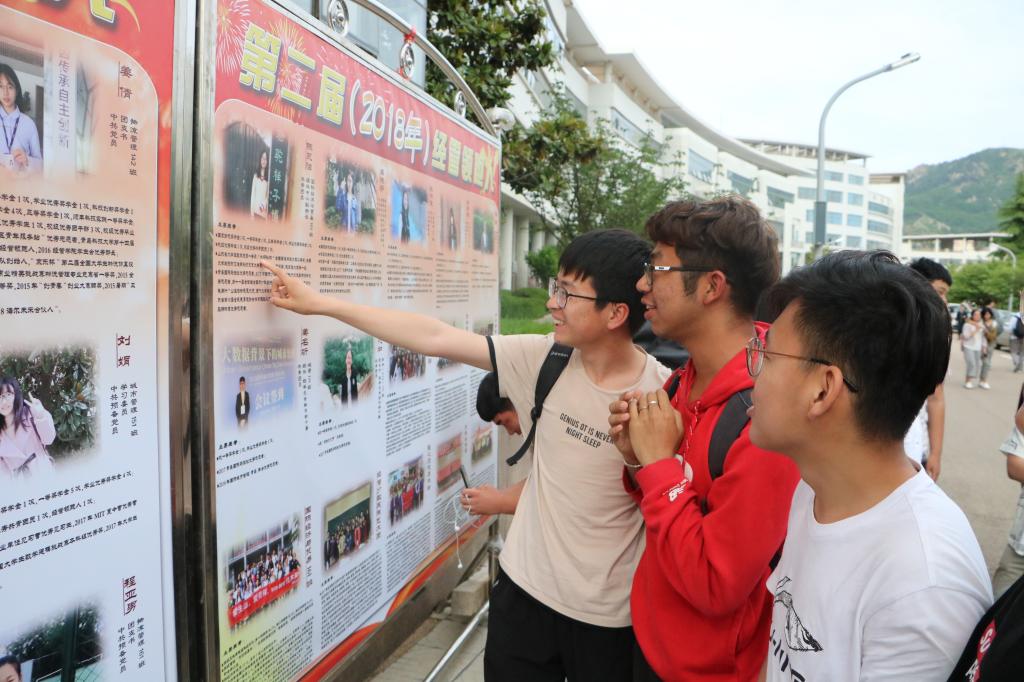 掀起青春榜样风。5月24日上午,印有经管领跑人事迹简介的特色展板在弘毅楼前展览,吸引了过往师生纷纷驻足观看,收获了师生的一致好评。