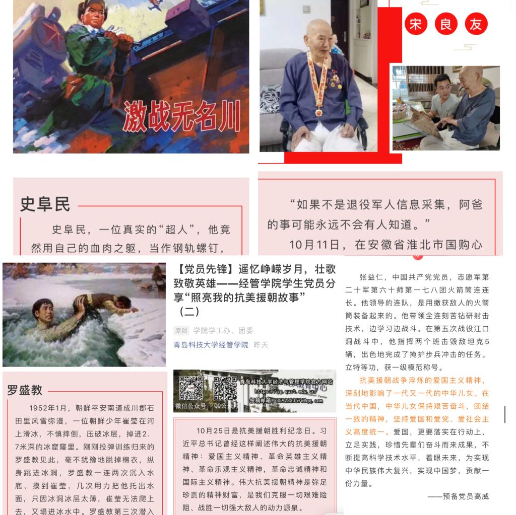 以学生党员教育管理为契机,发挥“一名党员就是一面旗帜”的模范带头作用,系统开展“遥忆峥嵘岁月,壮歌致敬英雄——学生党员分享‘照亮我的抗美援朝故事’”主题教育活动,以抗美援朝精神之爱国主义精神、革命英雄主义精神、革命乐观主义精神、革命忠诚精神和国际主义精神为引领,以真实史迹为依据,以教育引导广大同学为目的,引导党员深度挖掘革命烈士、人民英雄的作战事迹和人生故事,解析抗美援朝战争中鲜为人知的战例细节,并借助7mmtv